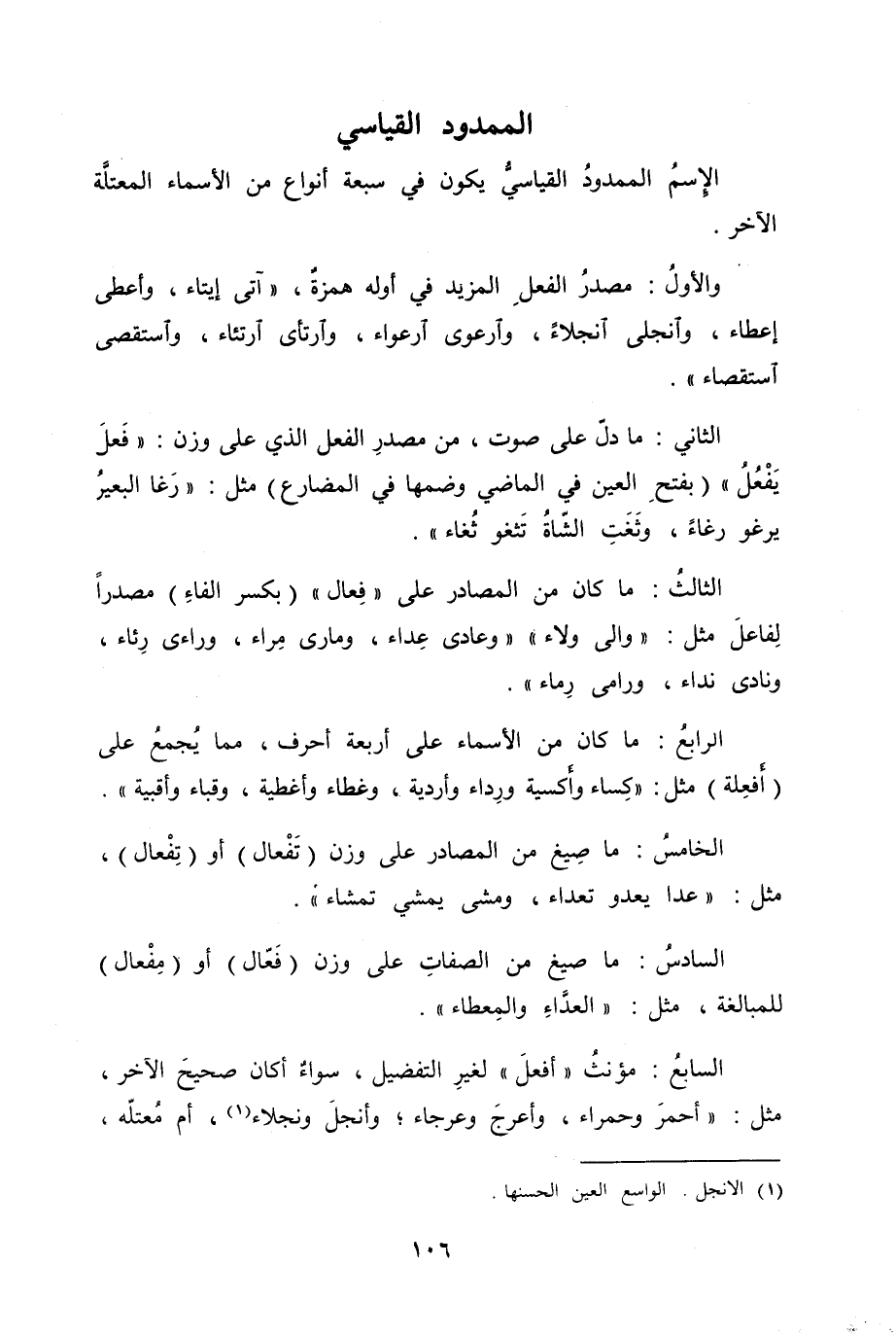 السابعُ مؤنثُ "أفعلَ" لغيرِ التفضيل، سواءٌ أكان صحيحَ الآخر، مثل "أحمرَ وحمراء، وأعرجَ وعرجاء؛ وأنجلَ ونجلاء، أم مُعتلّة،