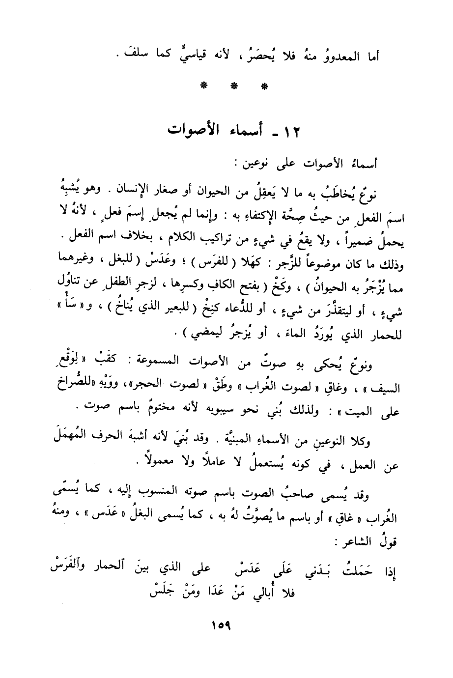 وقد يُسمى صاحبُ الصوت باسم صوته المنسوب إليه، كما يُسمّى الغُراب "غاقِ" أو باسم ما يُصوَّتُ لهُ به، كما يُسمى البغلُ "عَدَس"، ومنهُ قولُ الشاعر [من الرجز]
