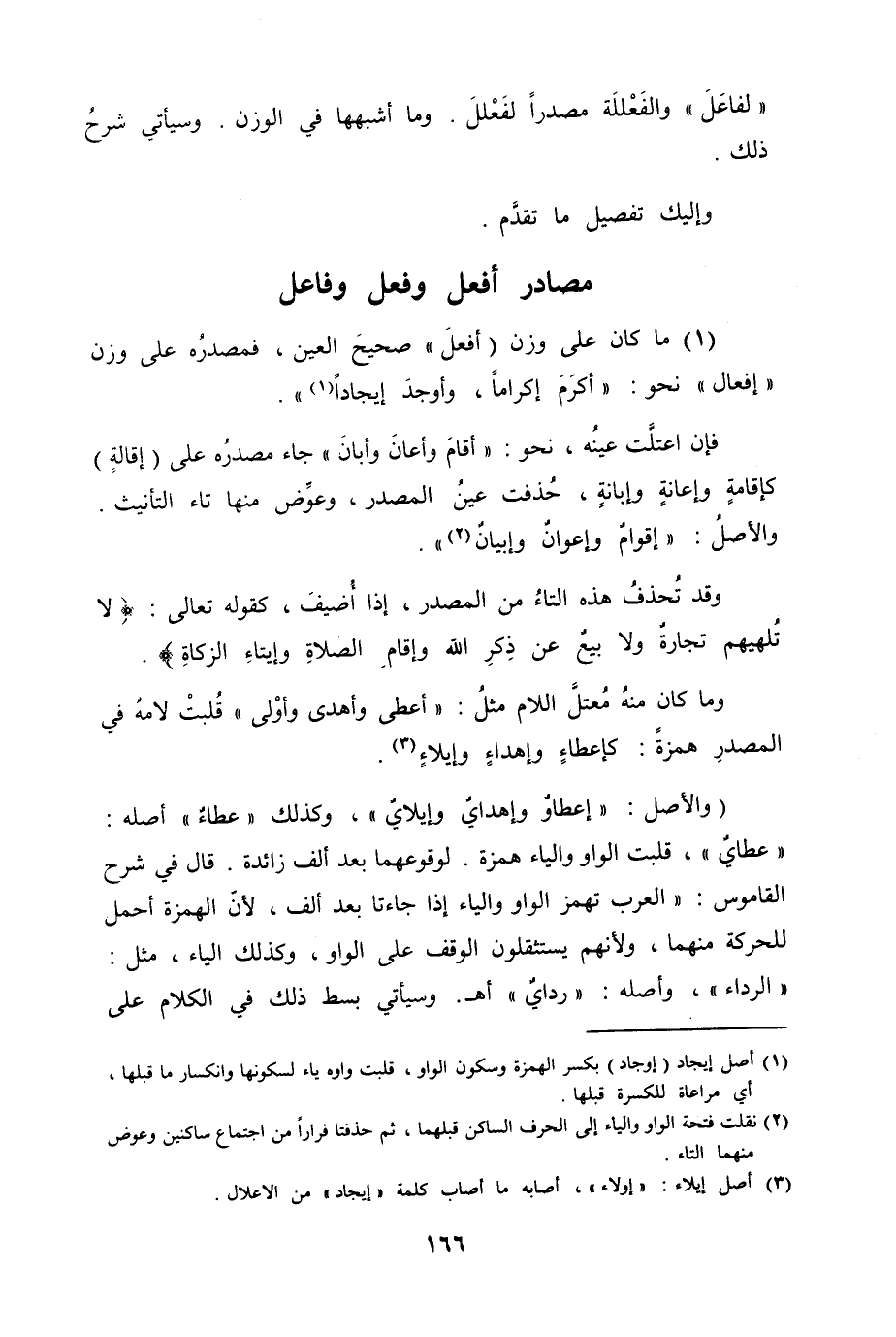 (والأصل "إعطاوٌ وإهدايٌ وإيلايٌ"، وكذلك "عطاءٌ" أصله "عطايٌ"، قلبت الواو والياء همزة. لوقوعهما بعد ألف زائدة. قال في شرح القاموس "العرب تهمز الواو والياء إذا جاءتا بعد ألف، لأنّ الهمزة أحمل للحركة منهما، ولأنهم يستثقلون الوقف على الواو، وكذلك الياء، مثل "الرداء"، وأصله "راديٌ" اهـ. وسيأتي بسط ذلك في الكلام على