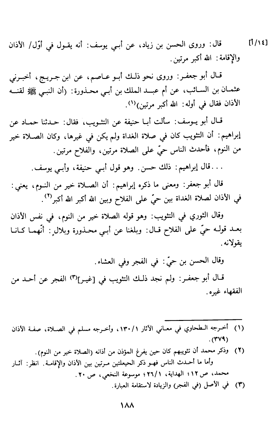 قَالَ أَبُو يُوسُف سَأَلت أَبَا حنيفَة عَن التثويب فَقَالَ حَدثنَا حَمَّاد عَن إِبْرَاهِيم أَن التثويب كَانَ فِي صَلَاة الْغَدَاة وَلم يكن فِي غَيرهَا وَكَانَ الصَّلَاة خير من النّوم فأحدث النَّاس حَيّ على الصَّلَاة مرَّتَيْنِ والفلاح مرَّتَيْنِ