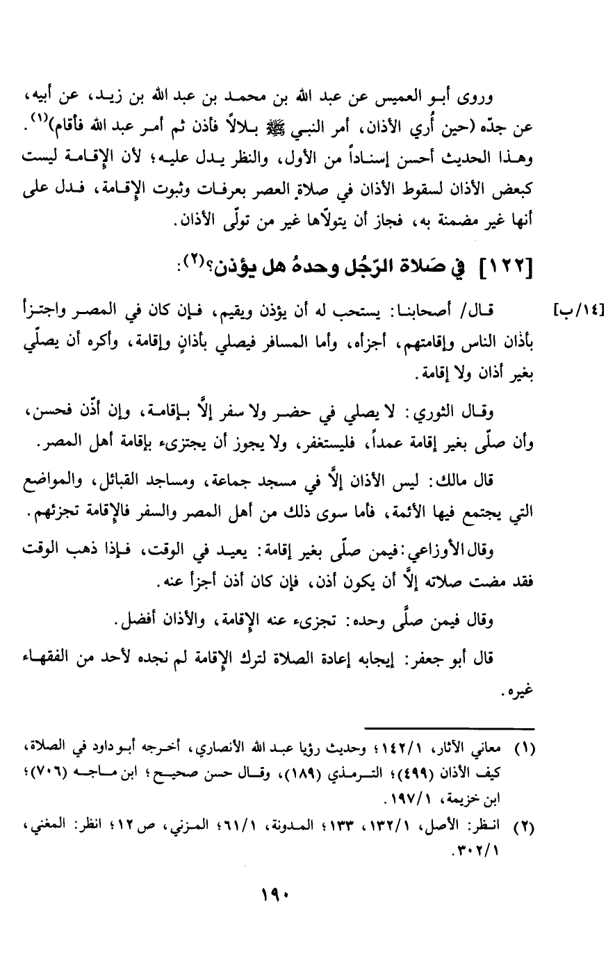 122 - فِي صَلَاة الرجل وَحده هَل يُؤذن