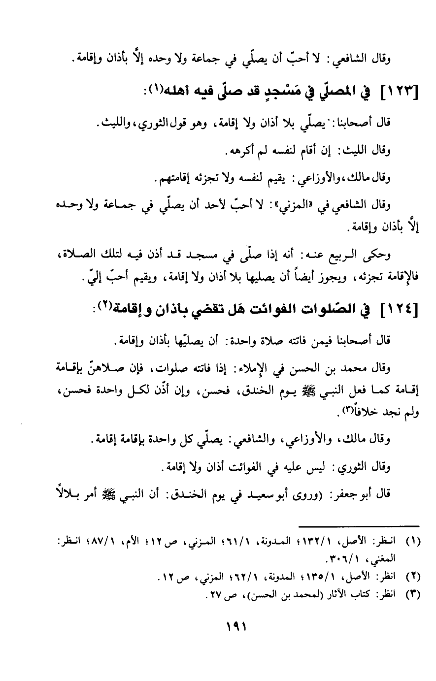 124 - فِي الصَّلَوَات الْفَوَائِت هَل تقضي بِأَذَان وَإِقَامَة