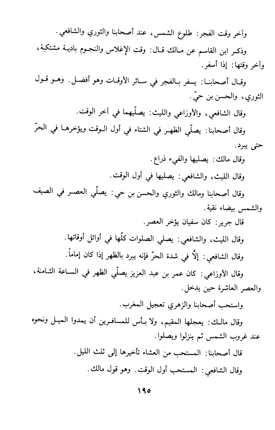 وَقَالَ أَصْحَابنَا وَمَالك وَالثَّوْري وَالْحسن بن حَيّ يُصَلِّي الْعَصْر فِي الصَّيف وَالشَّمْس بَيْضَاء نقية