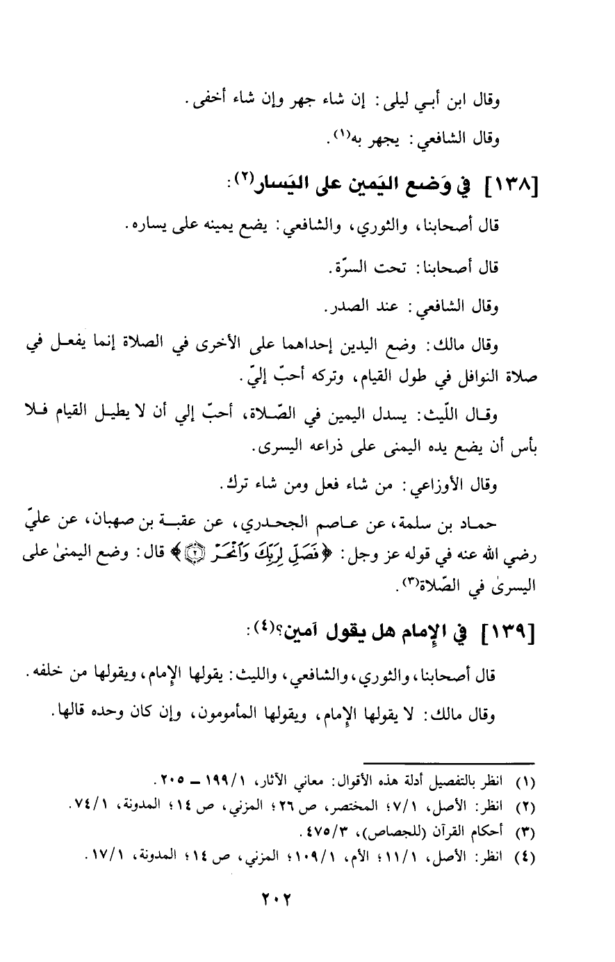 حَمَّاد بن سَلمَة عَن عَاصِم الجحدري عَن عقبَة بن صهْبَان عَن عَليّ رَضِي الله عَنهُ فِي قَوْله عز وَجل {فصل لِرَبِّك وانحر} قَالَ وضع الْيُمْنَى على الْيُسْرَى فِي الصَّلَاة