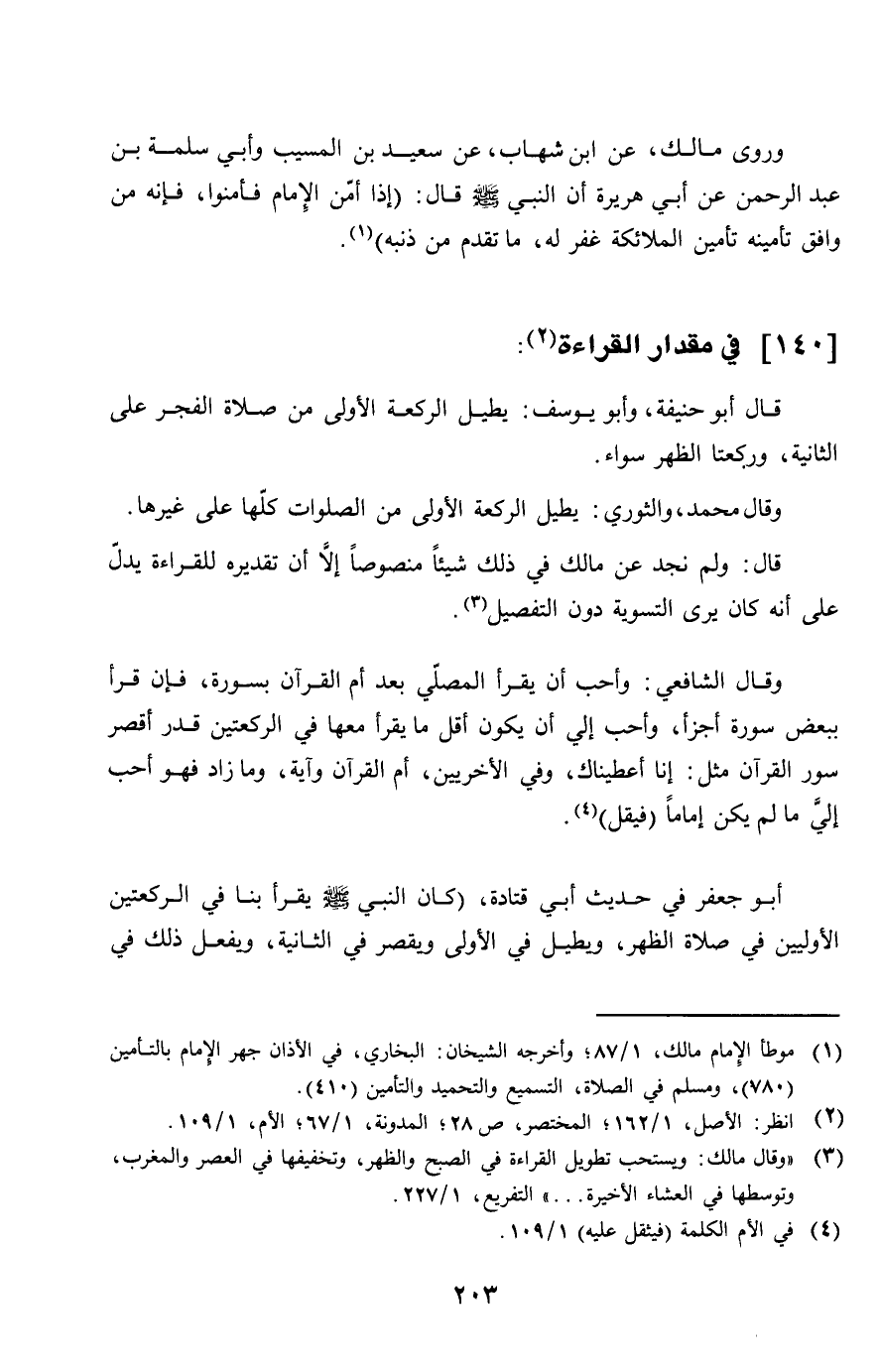 قَالَ وَلم نجد عَن مَالك فِي ذَلِك شَيْئا مَنْصُوصا إِلَّا أَن تَقْدِيره للْقِرَاءَة يدل على أَنه كَانَ يرى التَّسْوِيَة دون التَّفْصِيل