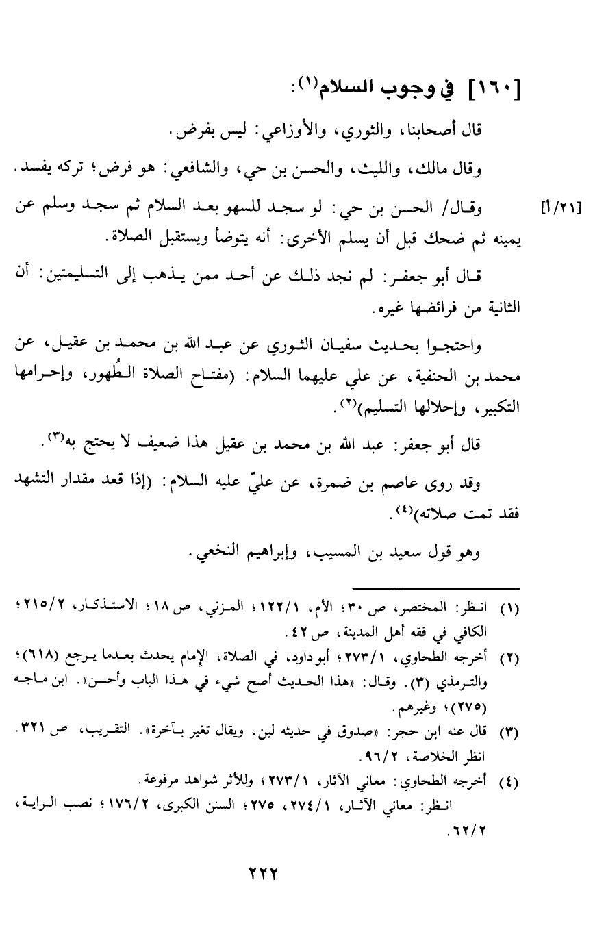 وَاحْتَجُّوا بِحَدِيث سُفْيَان الثَّوْريّ عَن عبد الله بن مُحَمَّد بن عقيل عَن مُحَمَّد بن الحنيفة عَن عَليّ عَلَيْهِمَا السَّلَام مِفْتَاح الصَّلَاة الطّهُور وإحرامها التَّكْبِير وإحلالها التَّسْلِيم