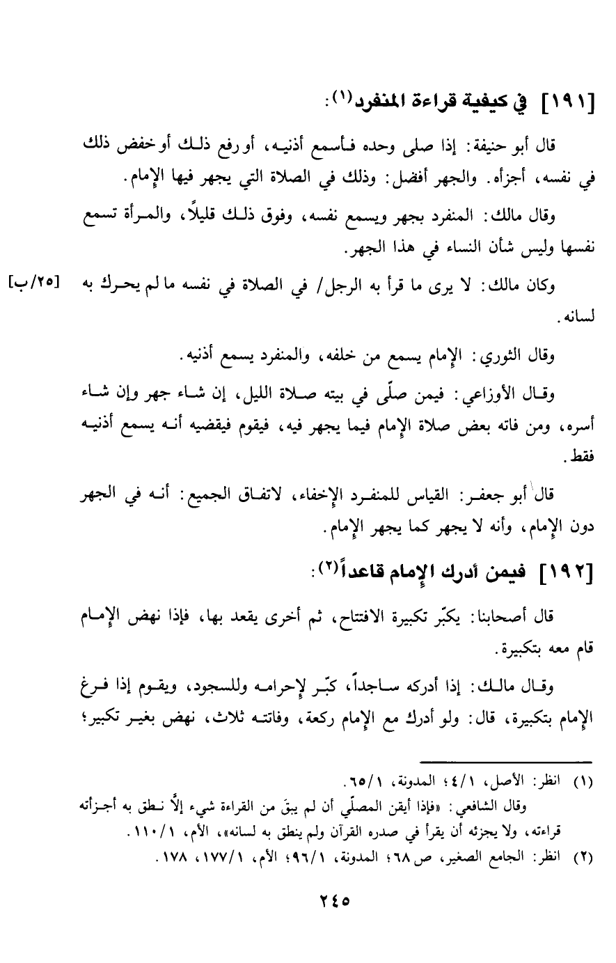 191 - فِي كَيْفيَّة قِرَاءَة الْمُنْفَرد