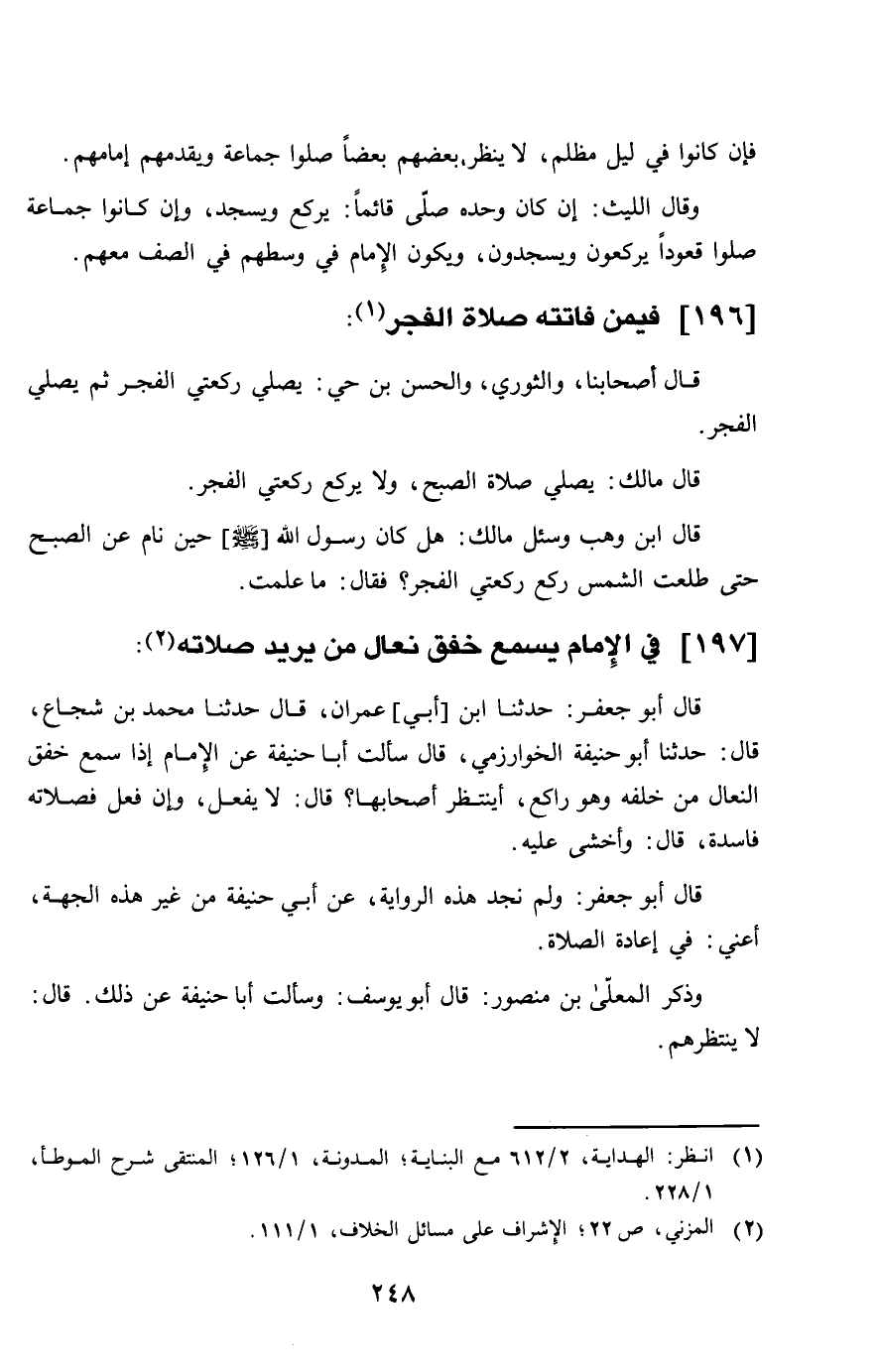 قَالَ أَبُو جَعْفَر حَدثنَا ابْن أبي عمرَان قَالَ حَدثنَا مُحَمَّد بن شُجَاع قَالَ حَدثنَا أَبُو حنيفَة الْخَوَارِزْمِيّ قَالَ سَأَلت أَبَا حنيفَة عَن الإِمَام إِذا سمع خَفق النِّعَال من خَلفه وَهُوَ رَاكِع أينتظر أَصْحَابهَا قَالَ لَا يفعل وَإِن فعل فَصلَاته فَاسِدَة قَالَ وأخشى عَلَيْهِ