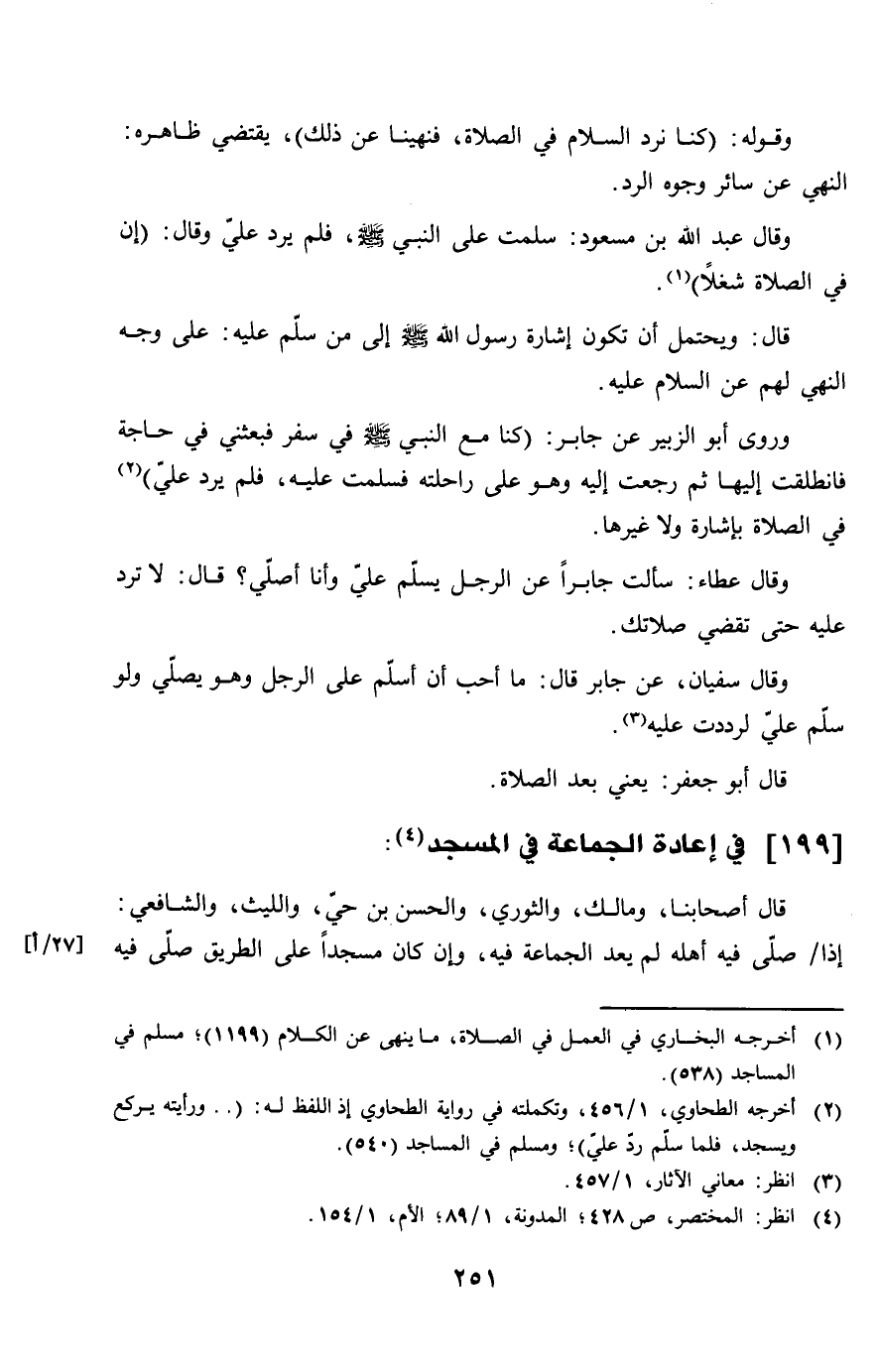 199 - فِي إِعَادَة الْجَمَاعَة فِي الْمَسْجِد