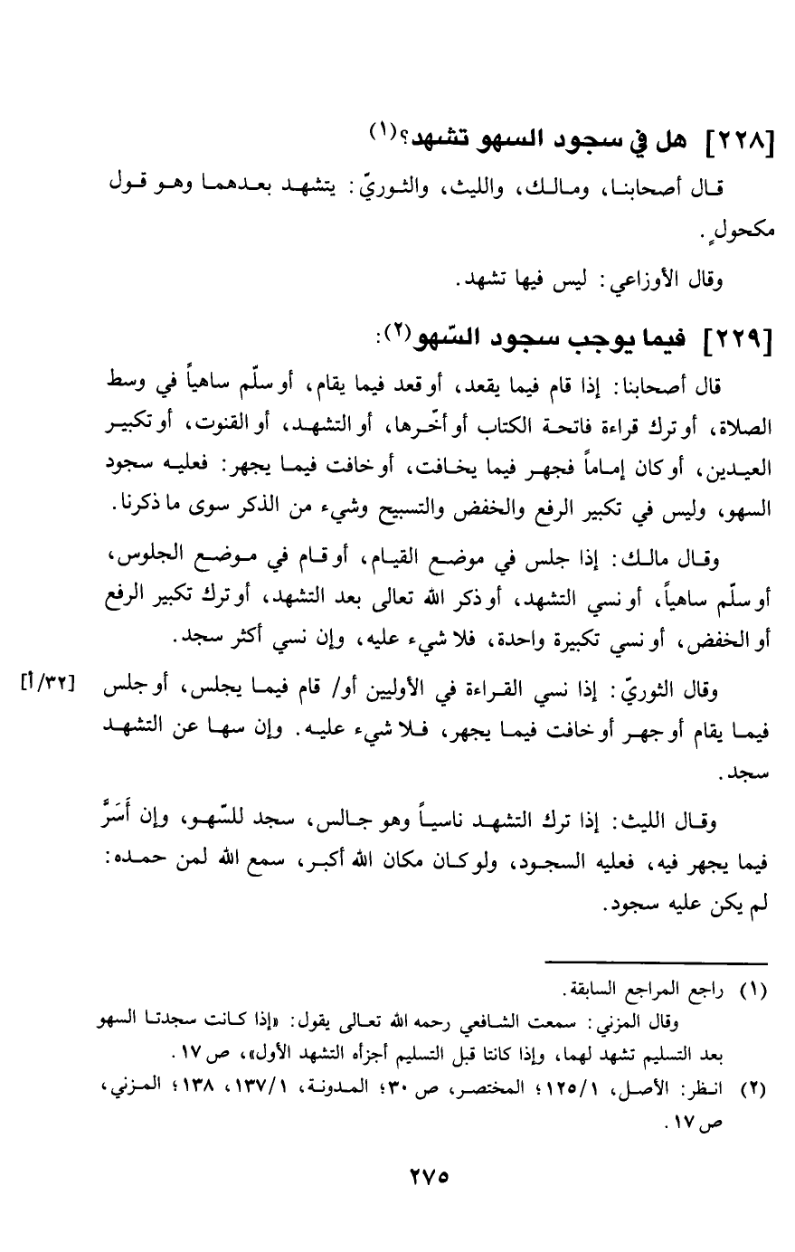 228 - هَل فِي سُجُود السَّهْو تشهد