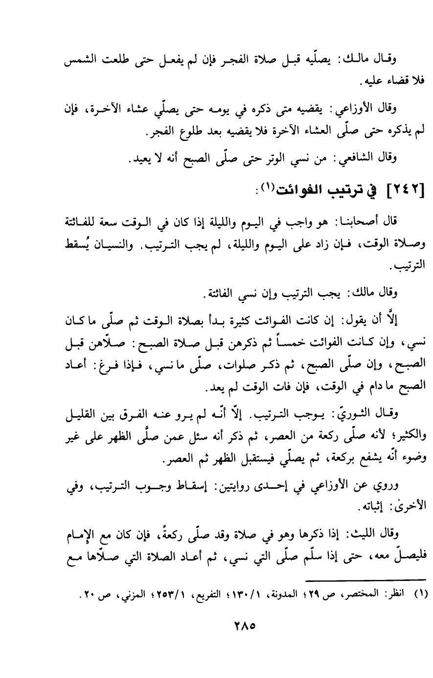 242 - فِي تَرْتِيب الْفَوَائِت