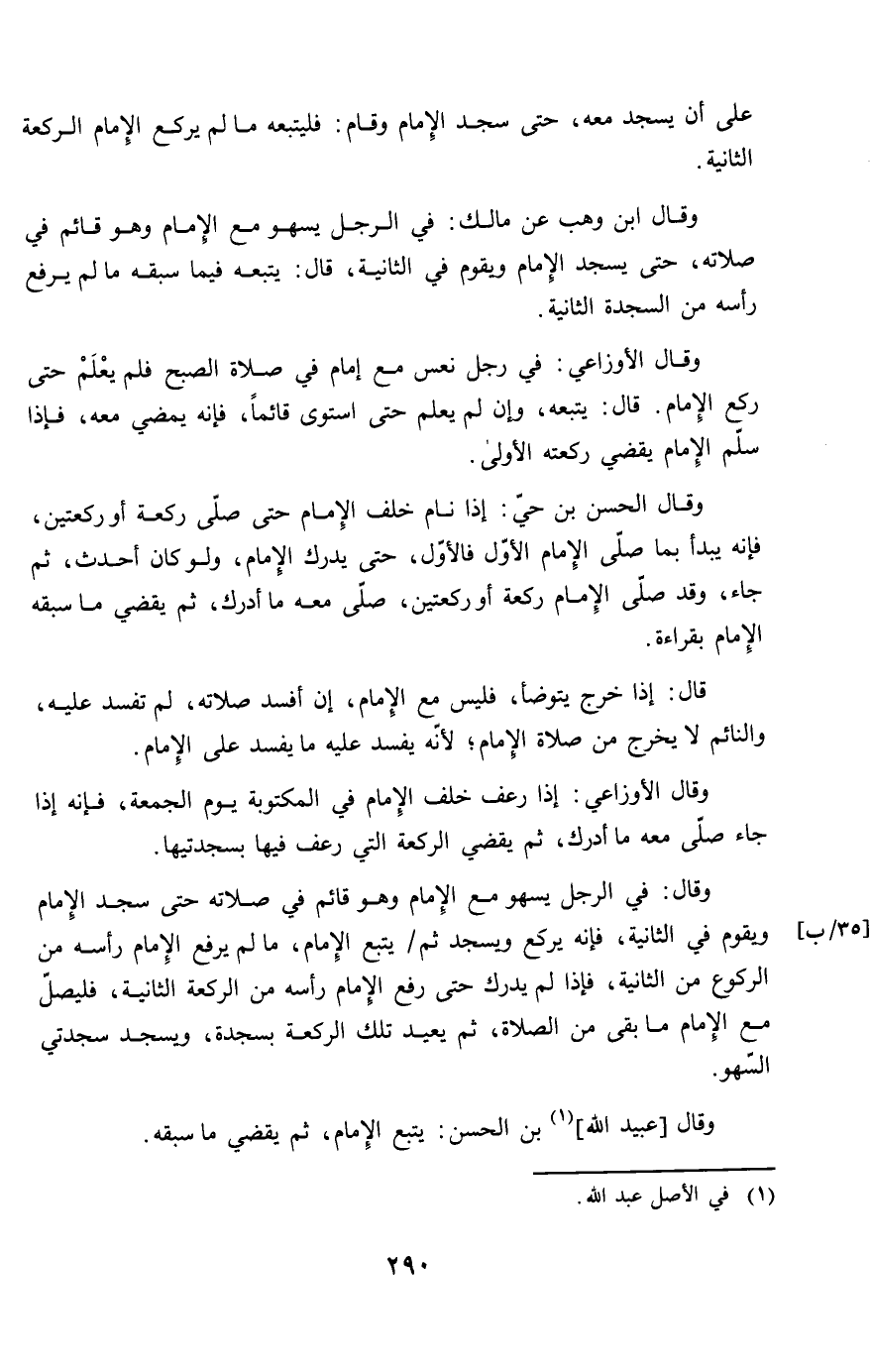 وَقَالَ ابْن وهب عَن مَالك فِي الرجل يسهو مَعَ الإِمَام وَهُوَ قَائِم فِي صلَاته حَتَّى يسْجد الإِمَام وَيقوم فِي الثَّانِيَة قَالَ يتبعهُ فِيمَا سبقه مَا لم يرفع رَأسه من السَّجْدَة الثَّانِيَة