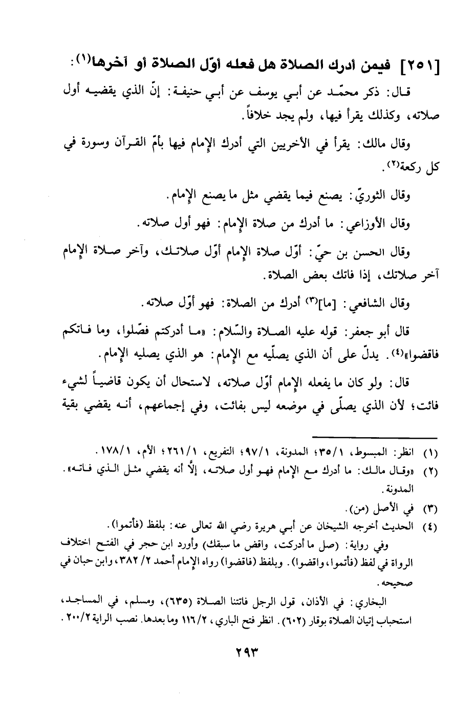 251 - فِيمَن أدْرك الصَّلَاة هَل فعله أول الصَّلَاة أَو آخرهَا