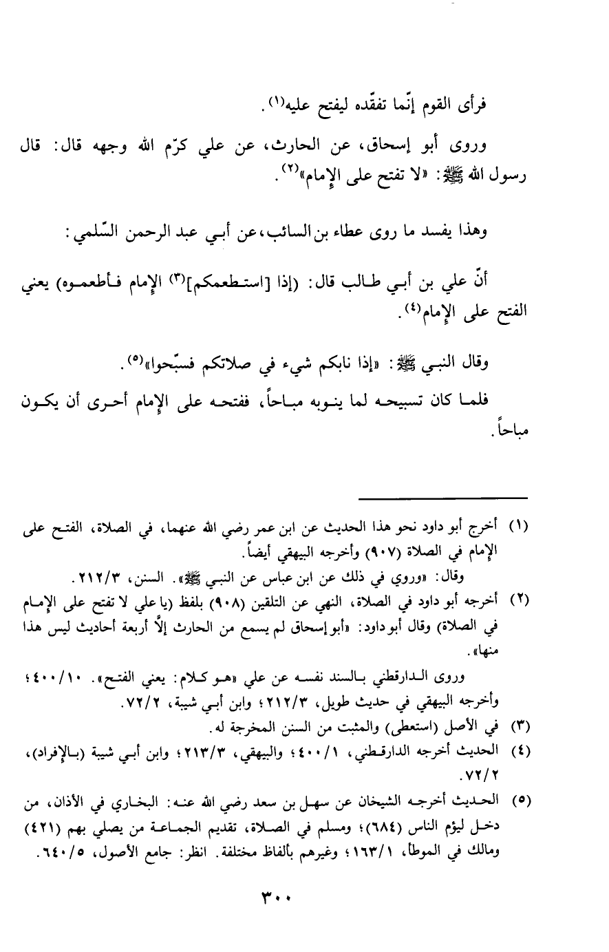 وروى أَبُو إِسْحَاق عَن الْحَارِث عَن عَليّ كرم الله وَجهه قَالَ قَالَ رَسُول الله صلى الله عَلَيْهِ وَسلم لَا تفتح على الإِمَام
