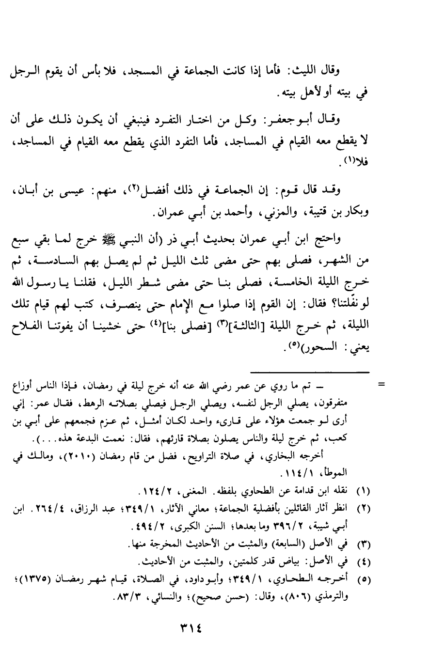 وَقد قَالَ قوم إِن الْجَمَاعَة فِي ذَلِك أفضل مِنْهُم عِيسَى بن أبان وبكار بن قُتَيْبَة والمزني وَأحمد بن أبي عمرَان