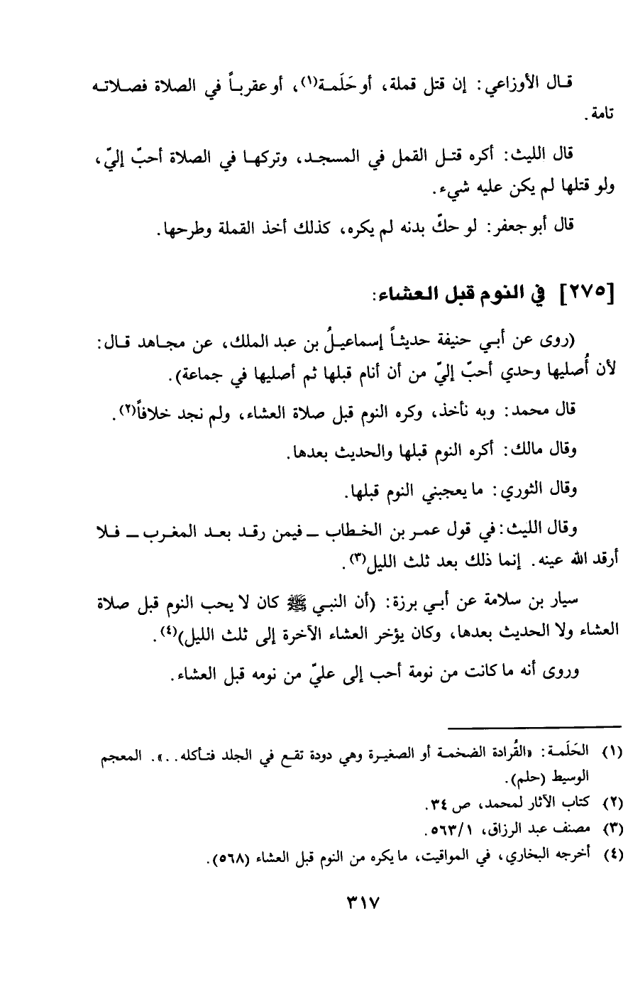 قَالَ اللَّيْث أكره قتل الْقمل فِي الْمَسْجِد وَتركهَا فِي الصَّلَاة أحب إِلَيّ وَلَو قَتلهَا لم يكن عَلَيْهِ شَيْء