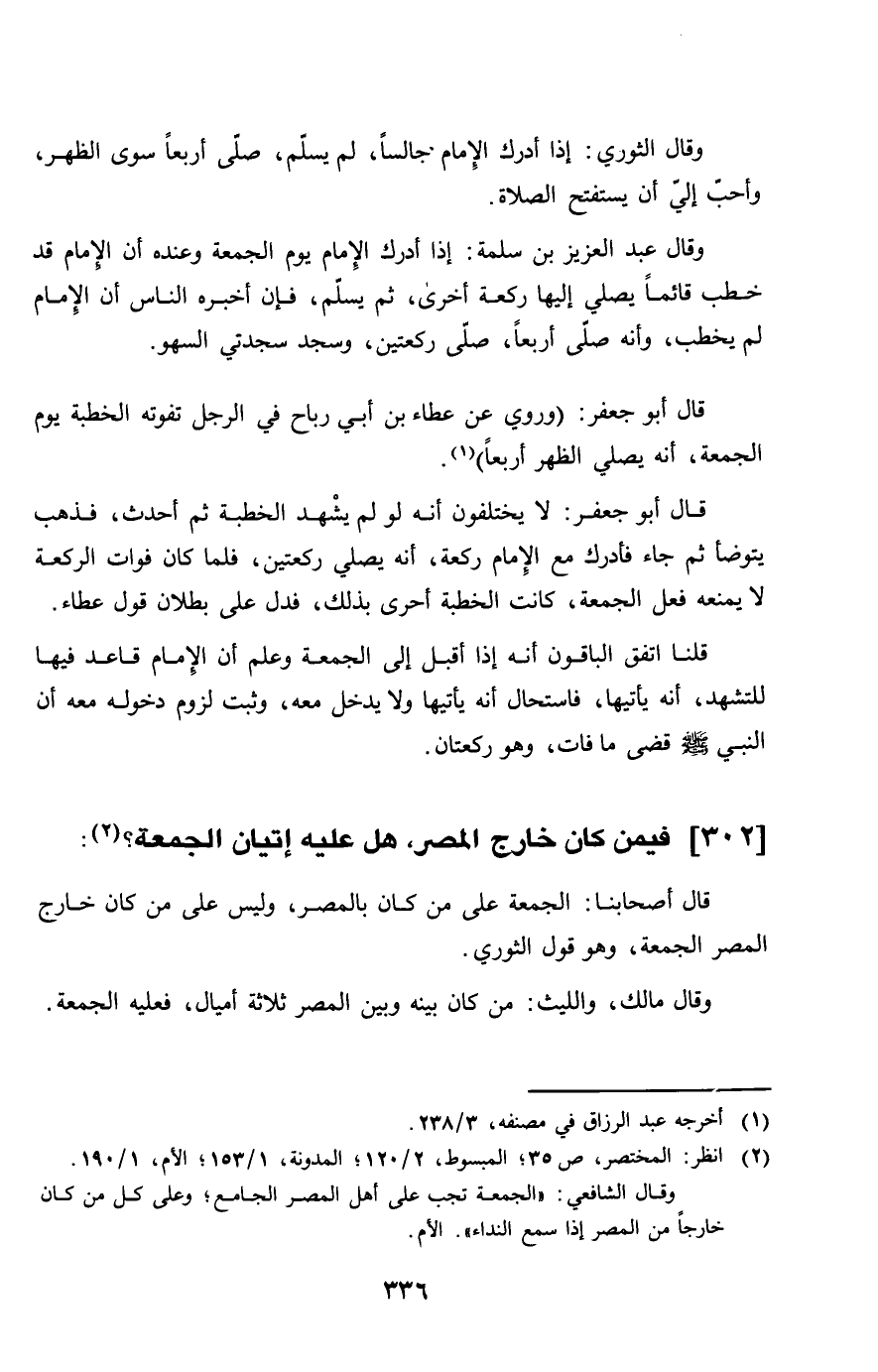 302 - فِيمَن كَانَ خَارج الْمصر هَل عَلَيْهِ إتْيَان الْجُمُعَة