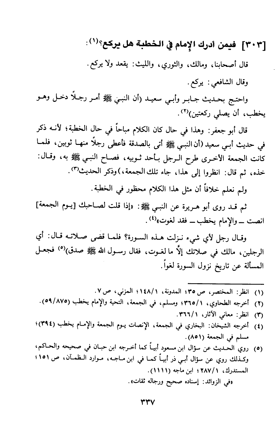 303 - فِيمَن أدْرك الإِمَام فِي الْخطْبَة هَل يرْكَع