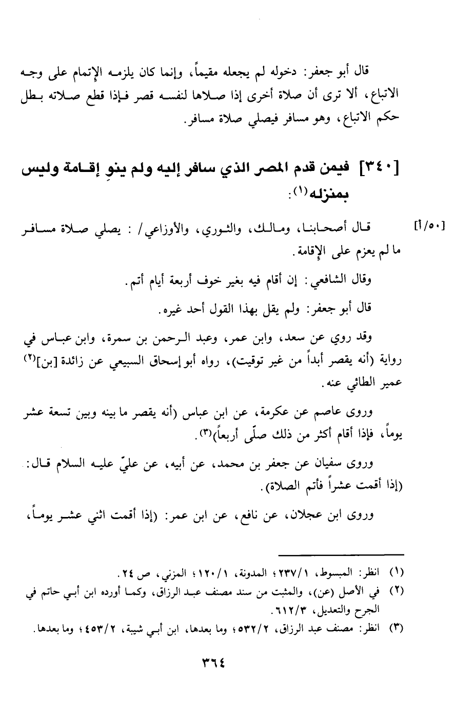 340 - فِيمَن قدم الْمصر الَّذِي سَافر إِلَيْهِ وَلم ينْو إِقَامَة وَلَيْسَ بمنزله