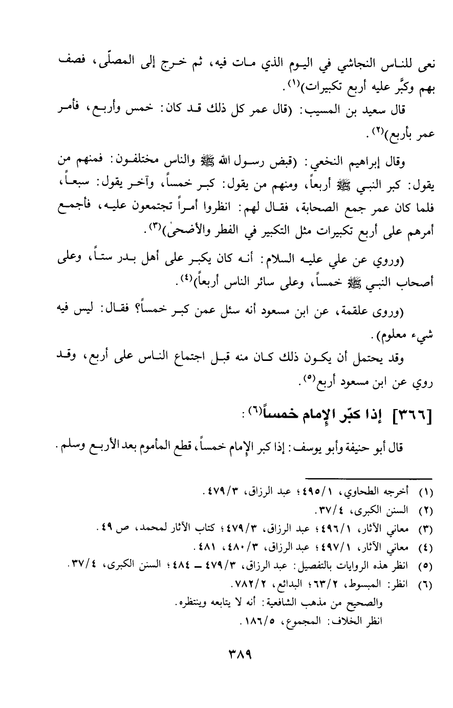 وَرُوِيَ عَن عَليّ عَلَيْهِ السَّلَام أَنه كَانَ يكبر على أهل بدر سِتا وعَلى أَصْحَاب النَّبِي صلى الله عَلَيْهِ وَسلم خمْسا وعَلى سَائِر النَّاس أَرْبعا