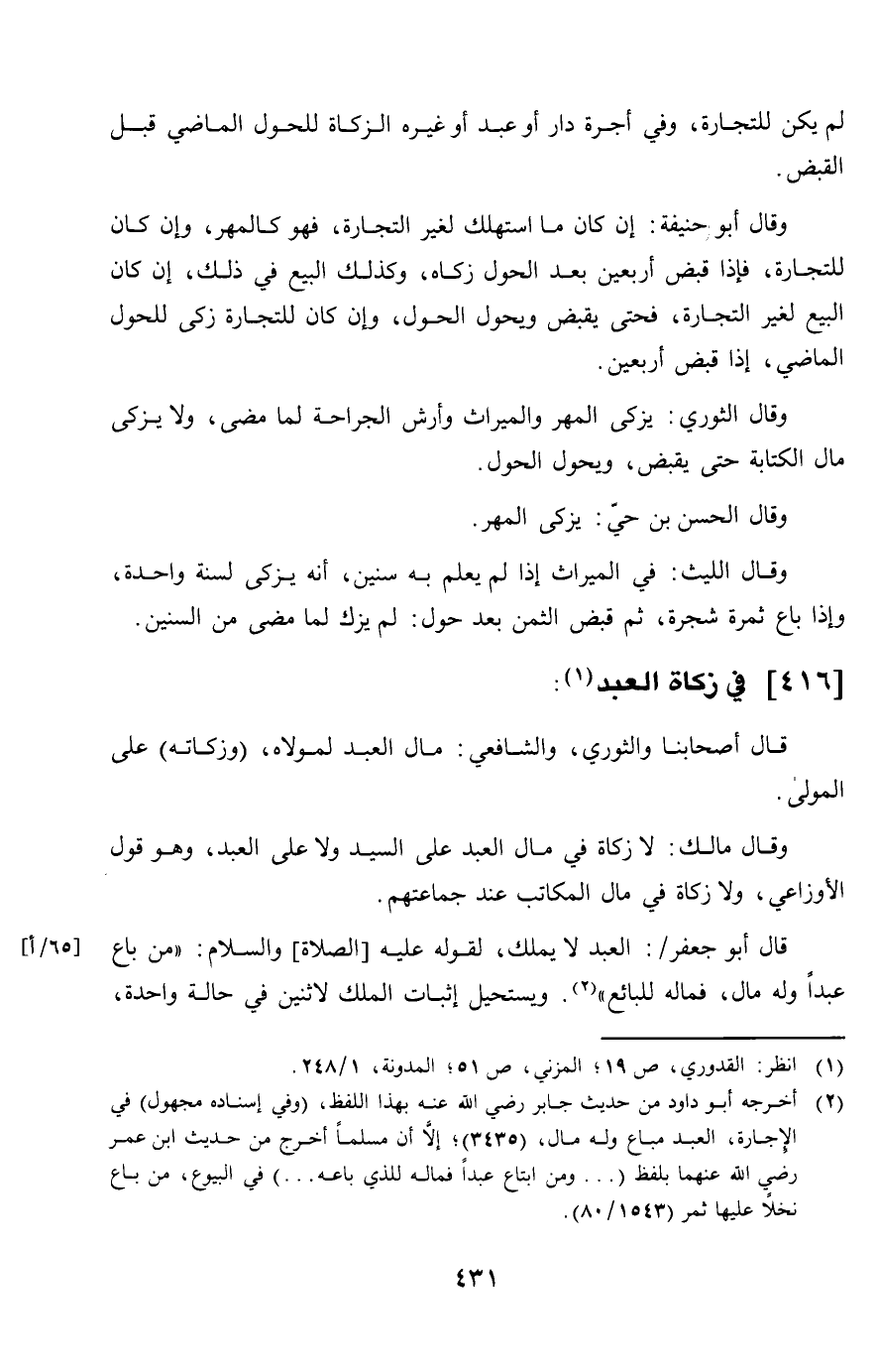 416 - فِي زَكَاة العَبْد