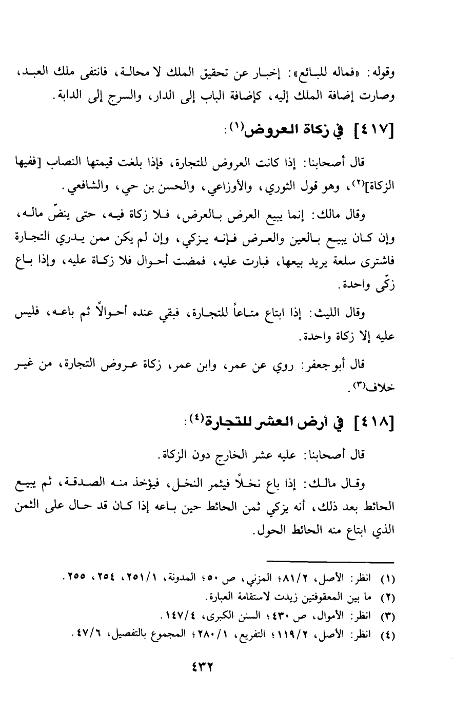 417 - فِي زَكَاة الْعرُوض