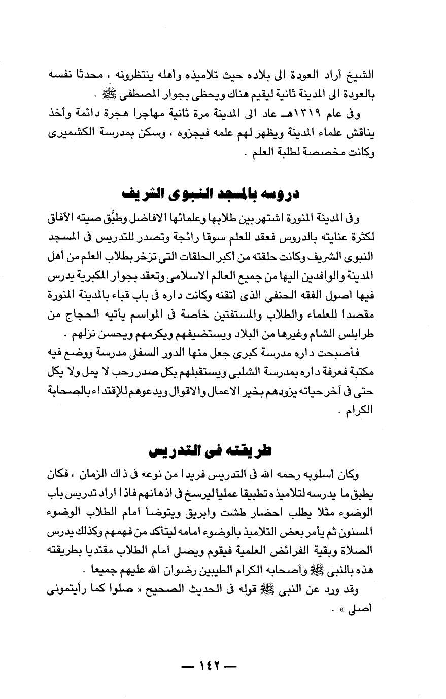 وفي عام 1319هـ عاد إلى المدينة مرة ثانية مهاجراً هجرة دائمة وأخذ يناقش علماء المدينة ويظهر لهم علمه فيجزوه، وسكن بمدرسة الكشميري وكانت مخصصة لطلبة العلم.