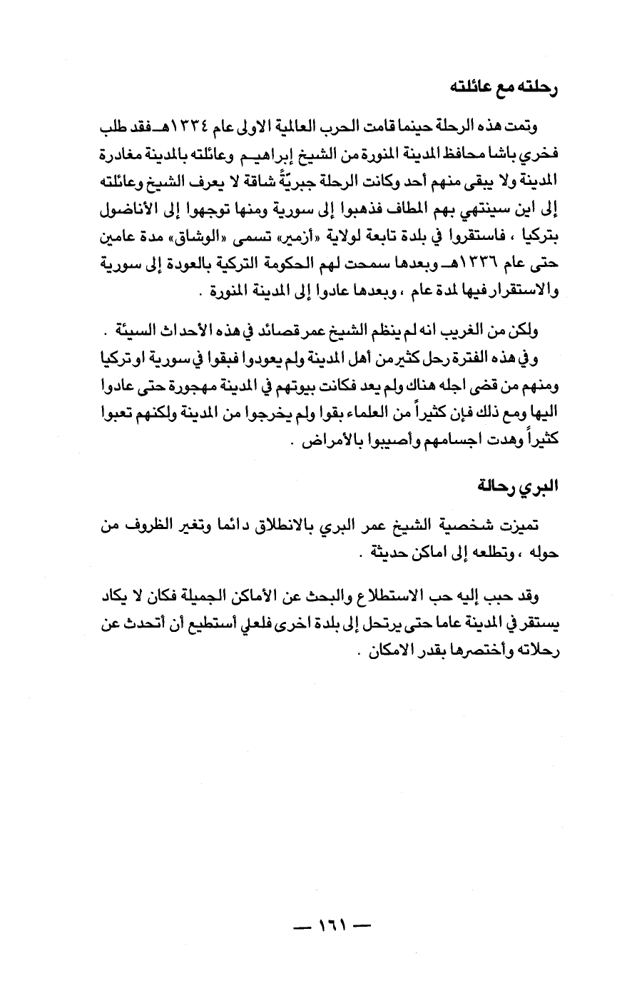 تميزت شخصية الشيخ عمر البري بالانطلاق دائماً وتغير الظروف من حوله، وتطلعه إلى أماكن حديثة.
