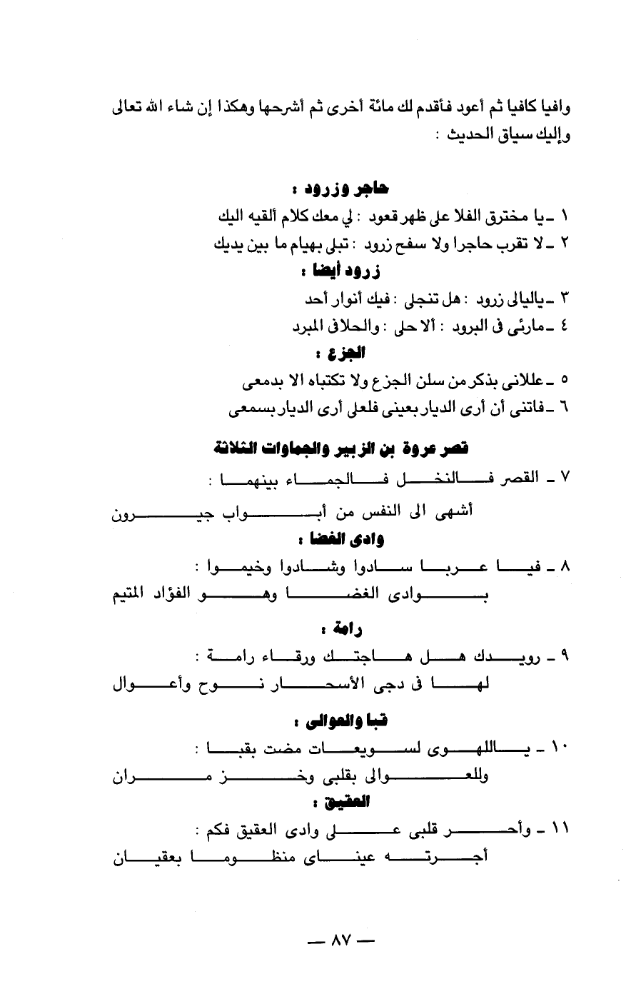 8 - فيا عربا سادوا وشادوا وخيموا بوادي الغضا وهو الفؤاد المتيم