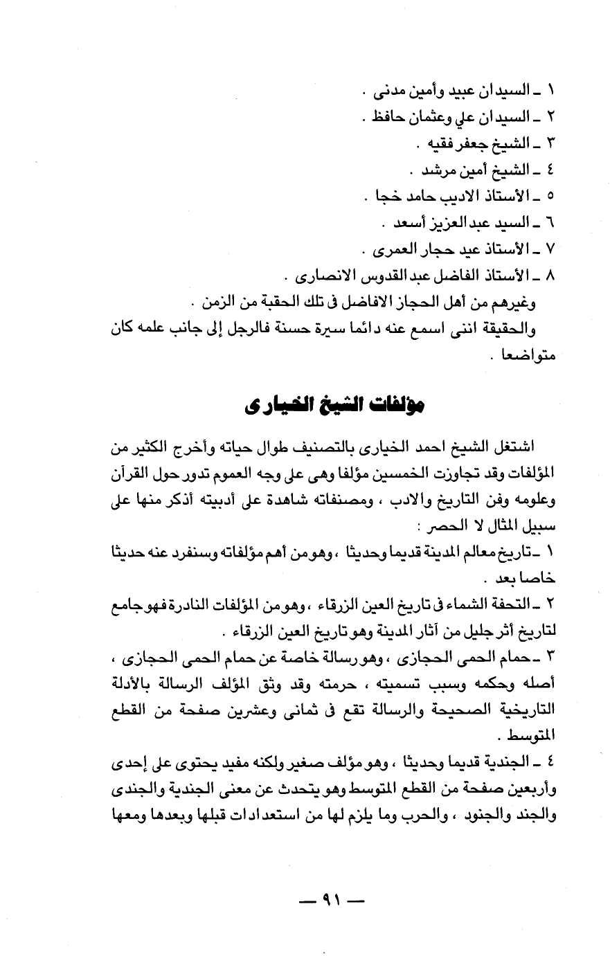 1 - تاريخ معالم المدينة قديماً وحديثاً، وهو من أهم مؤلفاته وسنفرد عنه حديثاً خاصاً بعد.