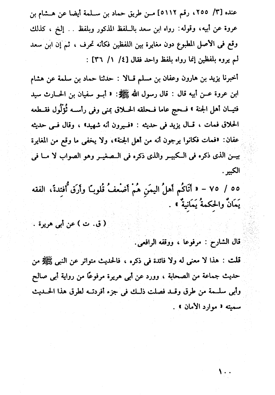 55/ 75 - "أَتَاكُم أَهلُ اليمَنِ هُمْ أَضْعفُ قُلوبًا وأرَقُّ أَفئِدةً، الفقه يَمَانٌ والحِكمةُ يَمَانِيةٌ". (ق. ت) عن أبي هريرة.