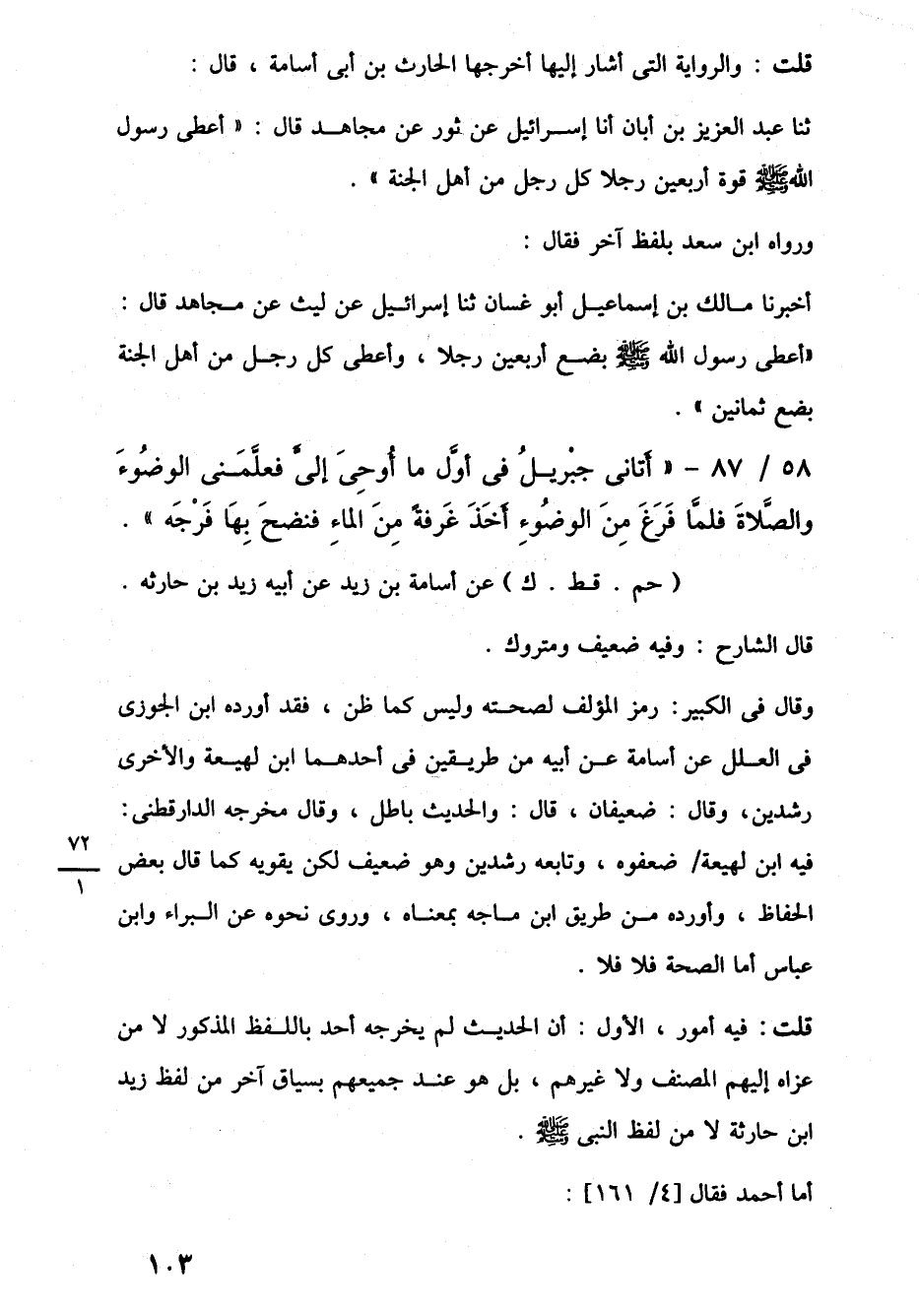 58/ 87 - "أَتانى جبْريلُ في أوَّل ما أُوحِيَ إليَّ فعلَّمَنى الوضُوءَ والصَّلاةَ فلمَّا فَرَغَ مِنَ الوضُوءِ أخَذَ غَرفةً مِنَ الماءِ فنضحَ بِهَا فَرْجَه".