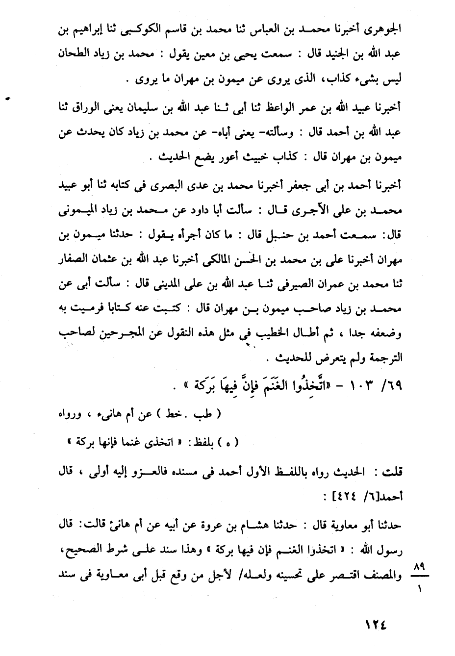 69/ 103 - "اتَّخِذُوا الغَنَمَ فإِنَّ فِيهَا بَرَكة".