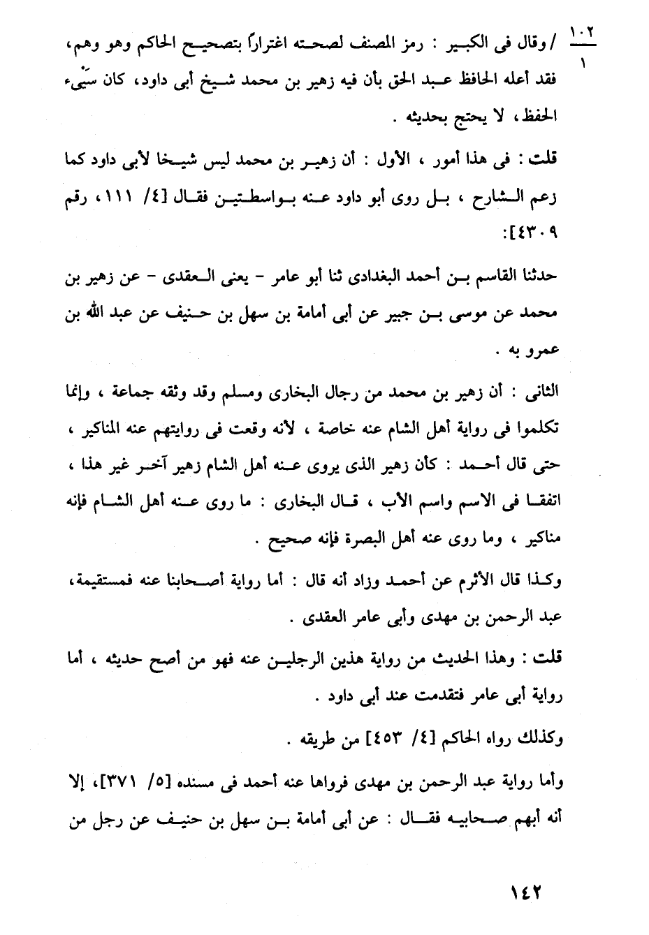 الثانى: أن زهير بن محمد من رجال البخارى ومسلم وقد وثقه جماعة، وإنما تكلموا في رواية أهل الشام عنه خاصة، لأنه وقعت في روايتهم عنه المناكير، حتى قال أحمد: كان زهير الذي يروى عنه أهل الشام زهير آخر غير هذا، اتفقا في الاسم واسم الأب، قال البخارى: ما روى عنه أهل الشام فإنه مناكير، وما روى عنه أهل البصرة فإنه صحيح.