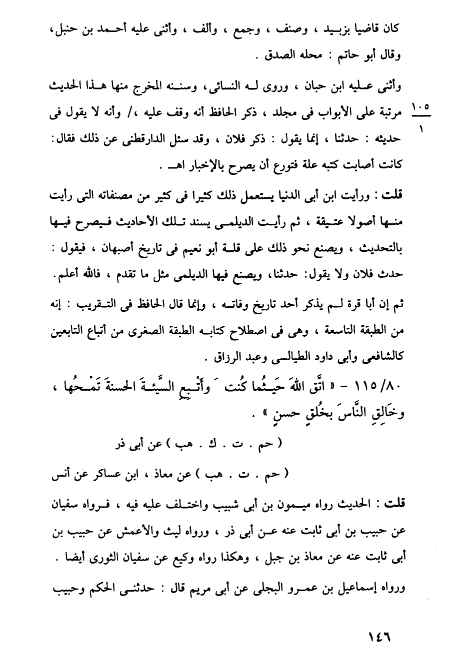 80/ 115 - "اتَّق اللَّهَ حَيثُما كُنتَ وأَتْبِعِ السَّيئةَ الحسنةَ تَمْحُها، وخَالِقِ النَّاسَ بخُلقٍ حسنٍ".