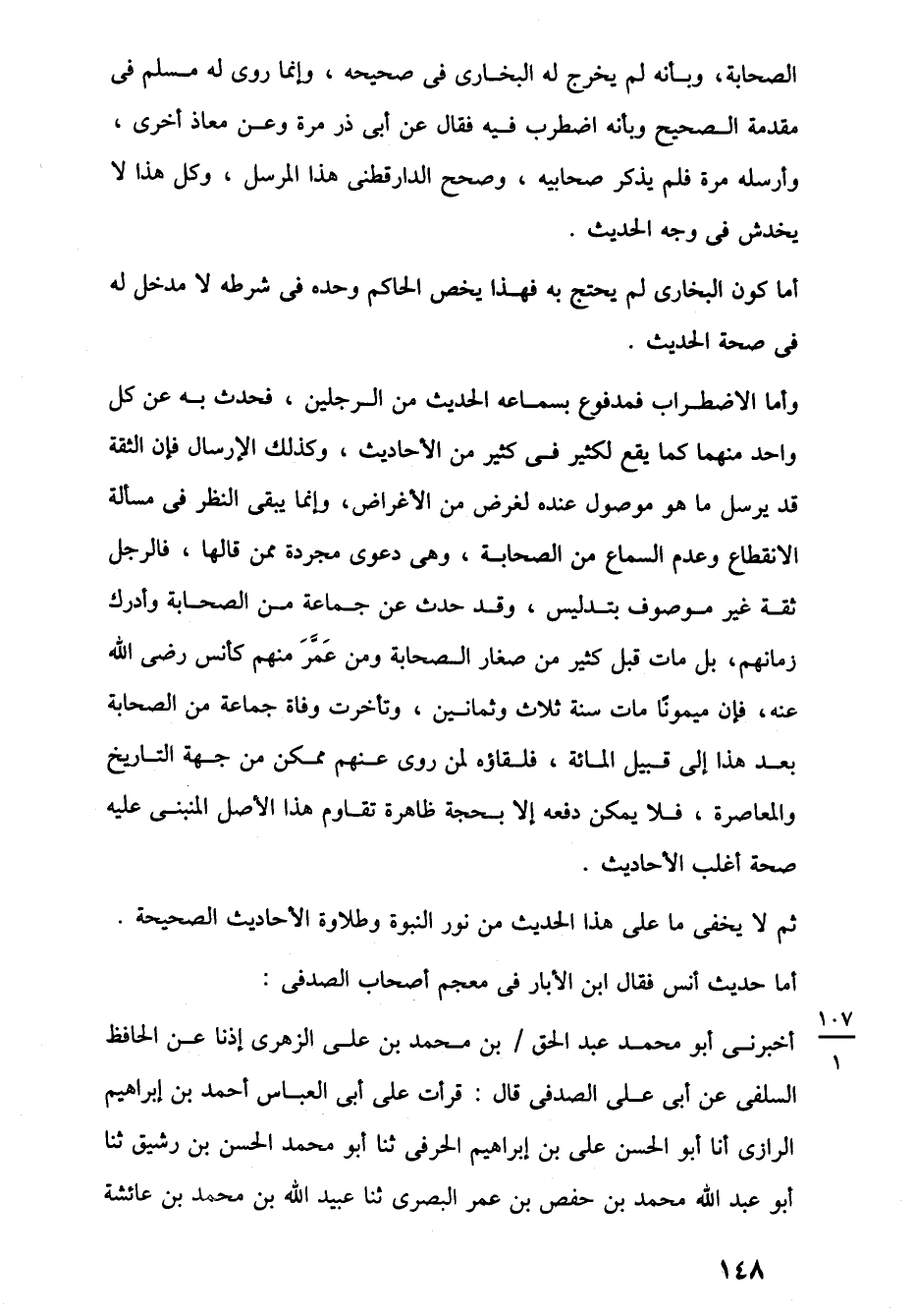 الصحابة، وبأنه لم يخرج له البخارى في صحيحه، وإنما روى له مسلم في مقدمة الصحيح وبأنه اضطرب فيه فقال عن أبي ذر مرة وعن معاذ أخرى، وأرسله مرة فلم يذكر صحابيه، وصحح الدارقطنى هذا المرسل، وكل هذا لا يخدش في وجه الحديث.