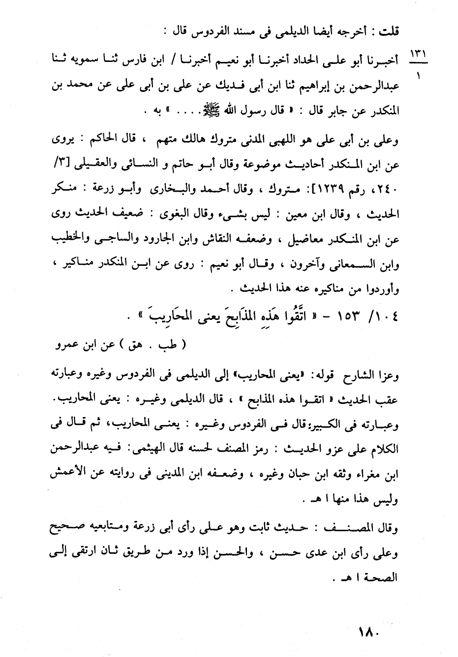104/ 153 - "اتَّقُوا هَذِهِ المذَابِحَ يعنى المحَارِيبَ". (طب. هق) عن ابن عمرو
