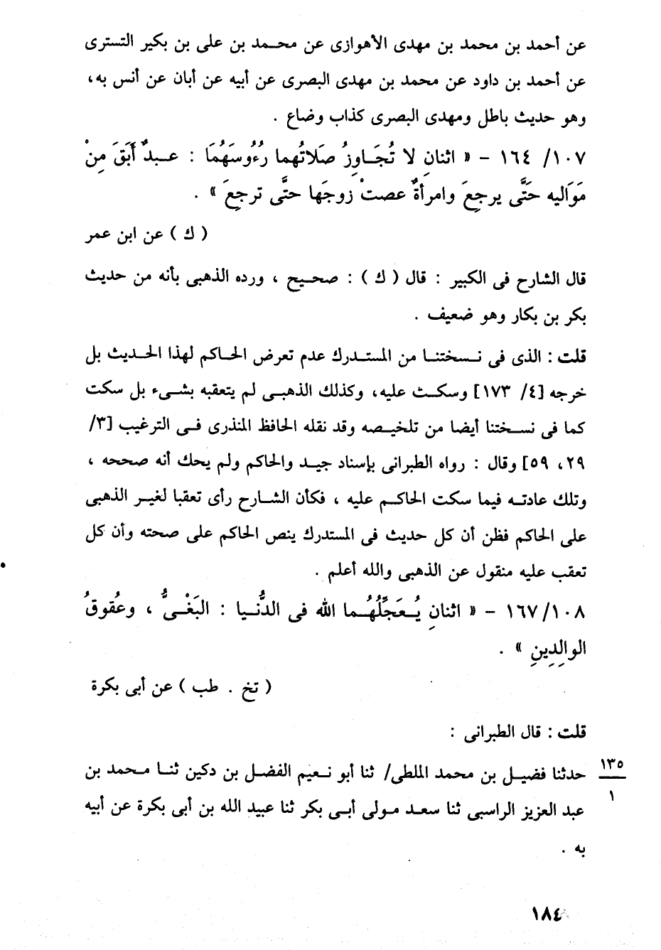 108/ 167 - "اثنانِ يُعَجِّلُهُما اللَّه في الدُّنيا: البَغْيُّ، وعُقوقُ الوالِدِينِ". (تخ. طب) عن أبي بكرة