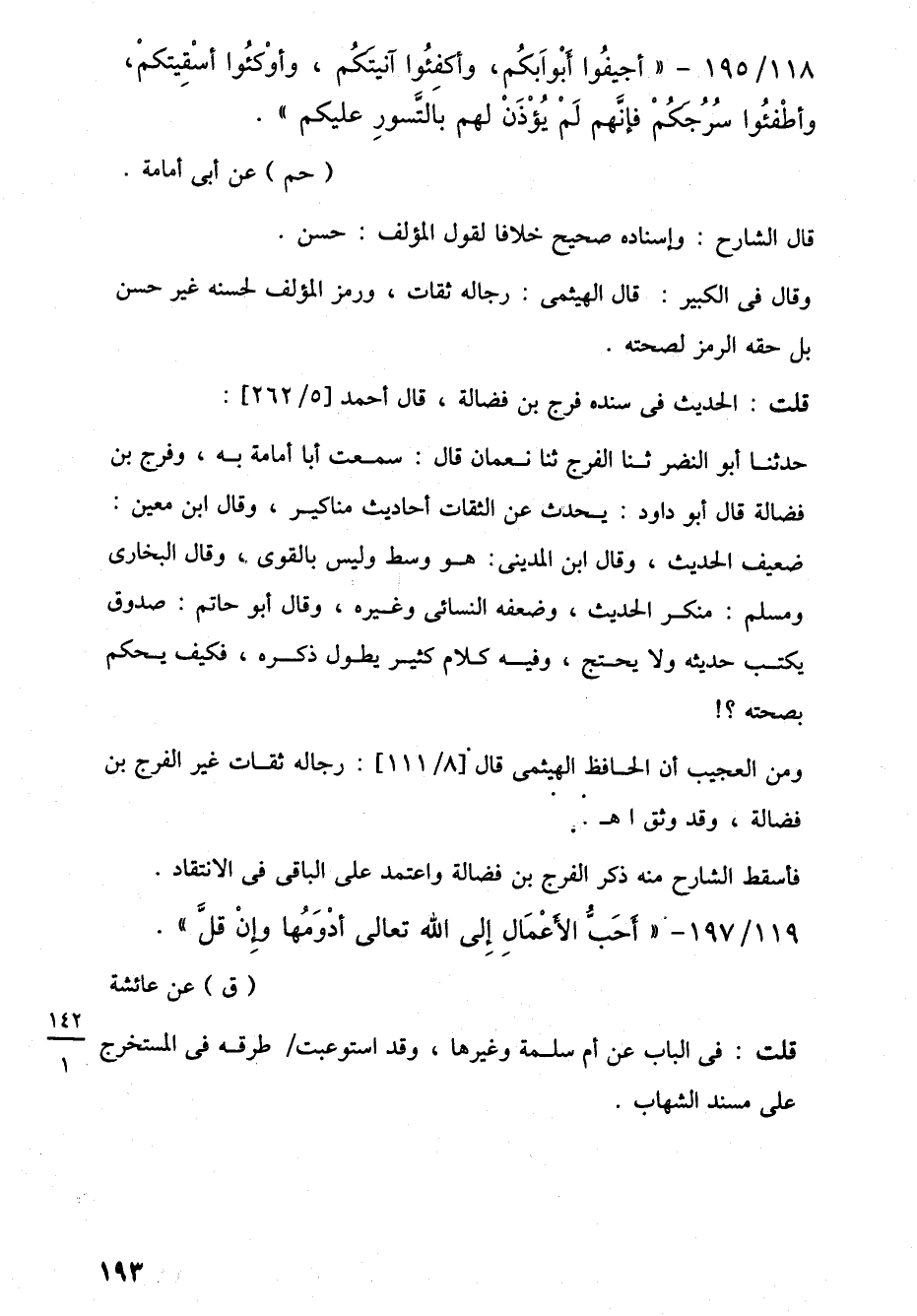 119/ 197 - "أَحَبُّ الأَعْمَالِ إِلى اللَّه تعالى أدْوَمُها وإِنْ قلَّ". (ق) عن عائشة