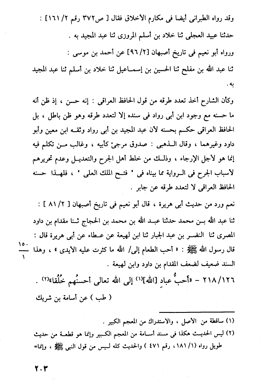126/ 218 - "أحبُّ عبادِ [اللَّه] (¬1) إلى اللَّه تعالى أحسنُهم خُلُقا" (¬2). (طب) عن أسامة بن شريك