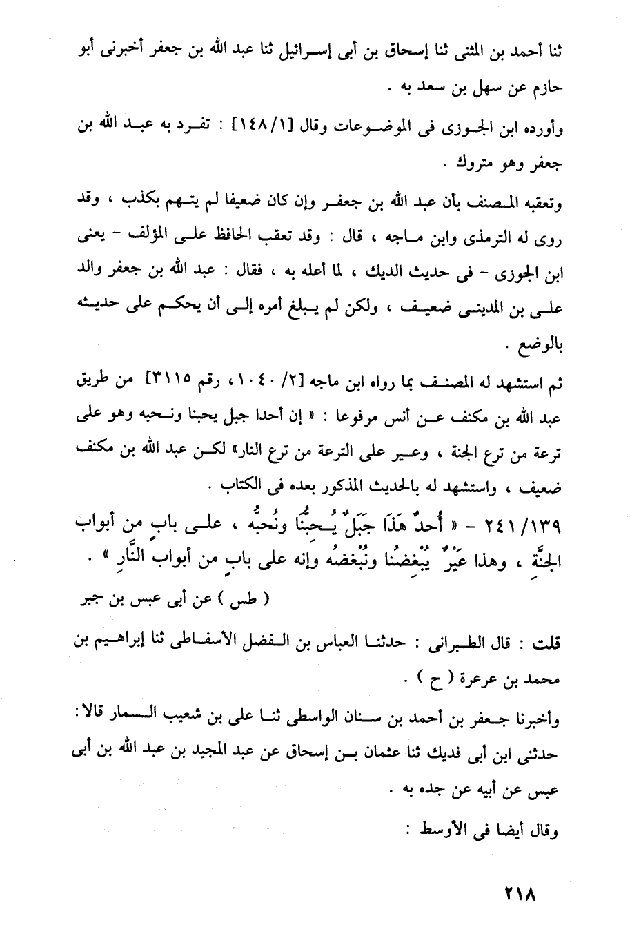 139/ 241 - "أُحدٌ هَذَا جَبَلٌ يُحِبُّنا ونُحبُّه، على بابٍ من أبواب الجنَّةِ، وهذا عَيْرٌ يُبْغِضُنا ونُبْغضُه وإنه على بابٍ من أبواب النَّارِ".