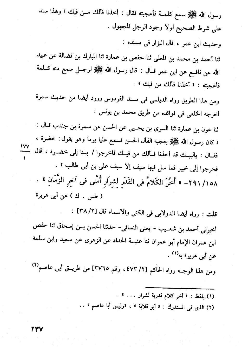 (¬1) بلفظ: "أخر كلام قدرية لشرار. . . ".