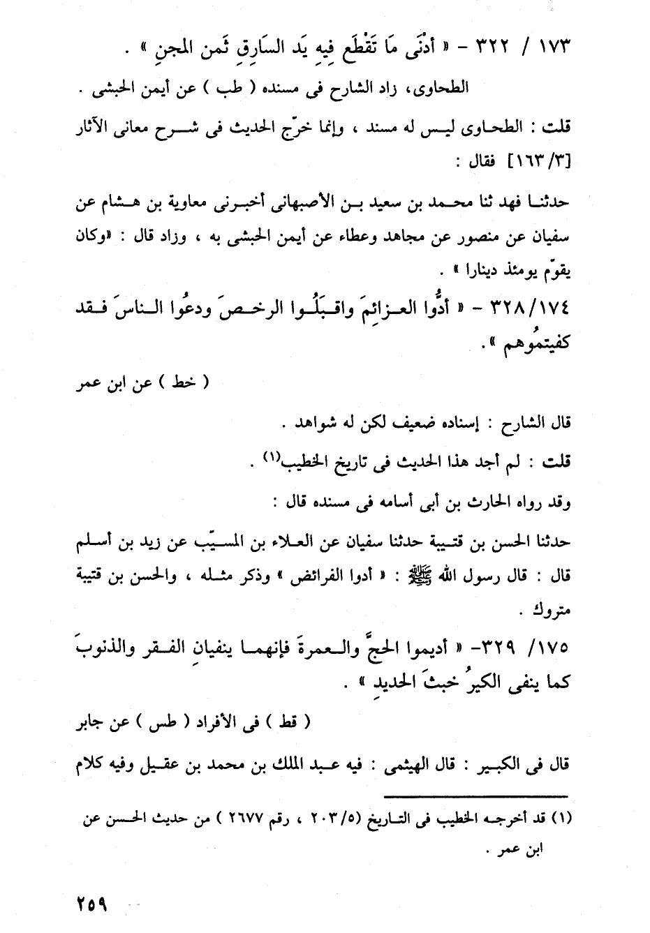 173/ 322 - "أدْنَى مَا تَقْطَع فِيهِ يَد السَارِقِ ثَمن المجنِ".