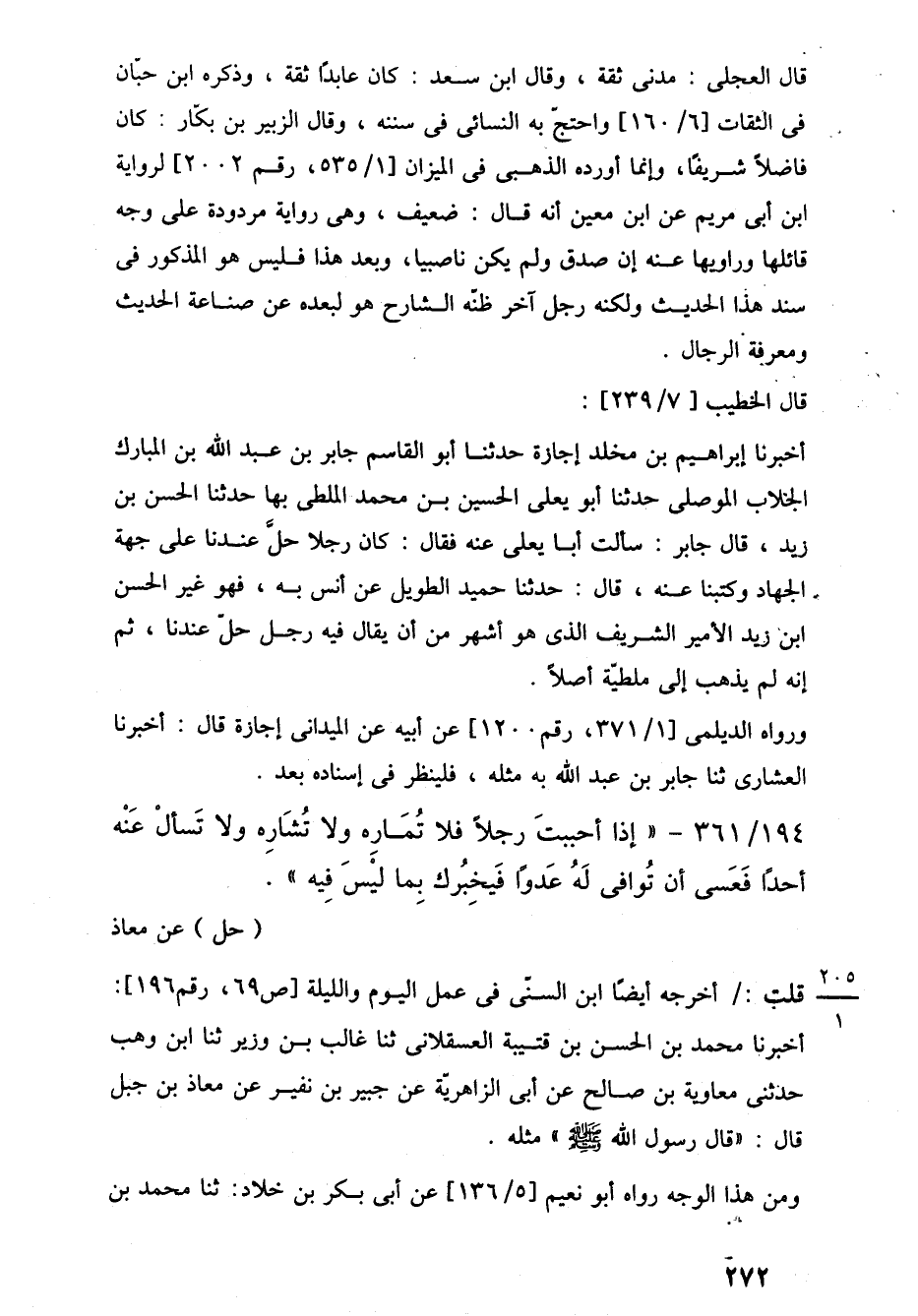 194/ 361 - "إذا أحببتَ رجلًا فلا تُمَارِه ولا تُشَارِه ولا تَسألْ عَنْه أحدًا فَعَسى أن تُوافى لَهُ عَدوًا فَيخِبُرك بِما لَيْسَ فِيه". (حل) عن معاذ