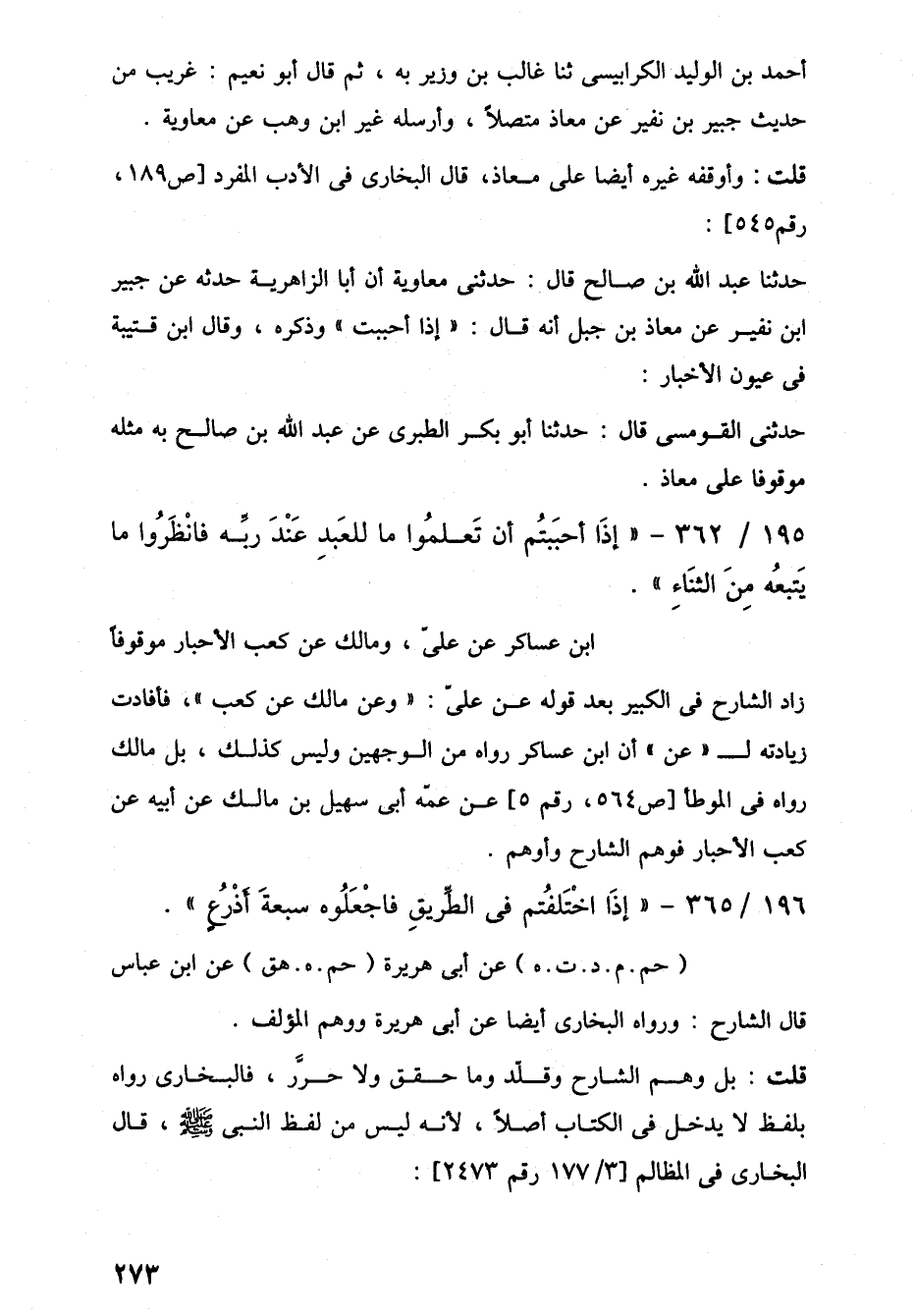 قلت: وأوقفه غيره أيضا على معاذ، قال البخارى في الأدب المفرد [ص 189، رقم 545]: