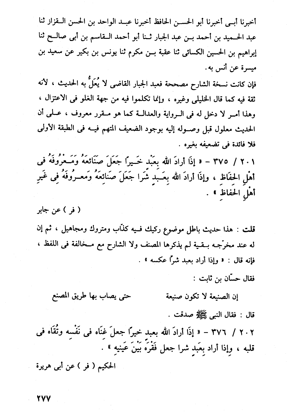 فإن كانت نسخة الشارح مصححة فعبد الجبار القاضى لا يُعَلُّ به الحديث، لأنه ثقة فيه كما قال الخليلى وغيره، وإنما تكلموا فيه من جهة الغلو في الاعتزال، وهذا أمر لا دخل له في الرواية والعدالة كما هو مقرر معروف، على أن الحديث معلول قبل وصوله إليه بوجود الضعيف المتهم فيه في الطبقة الأولى فلا فائدة في تضعيفه بغيره.