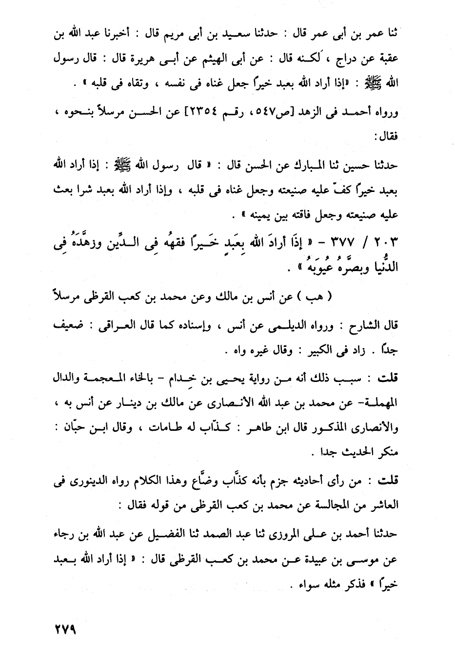 203/ 377 - "إذَا أرادَ اللَّه بِعَبدٍ خَيرًا فقهُه في الدِّين وزهَّدَهُ فِي الدُّنيا وبصَّرهُ عُيوبَهُ".