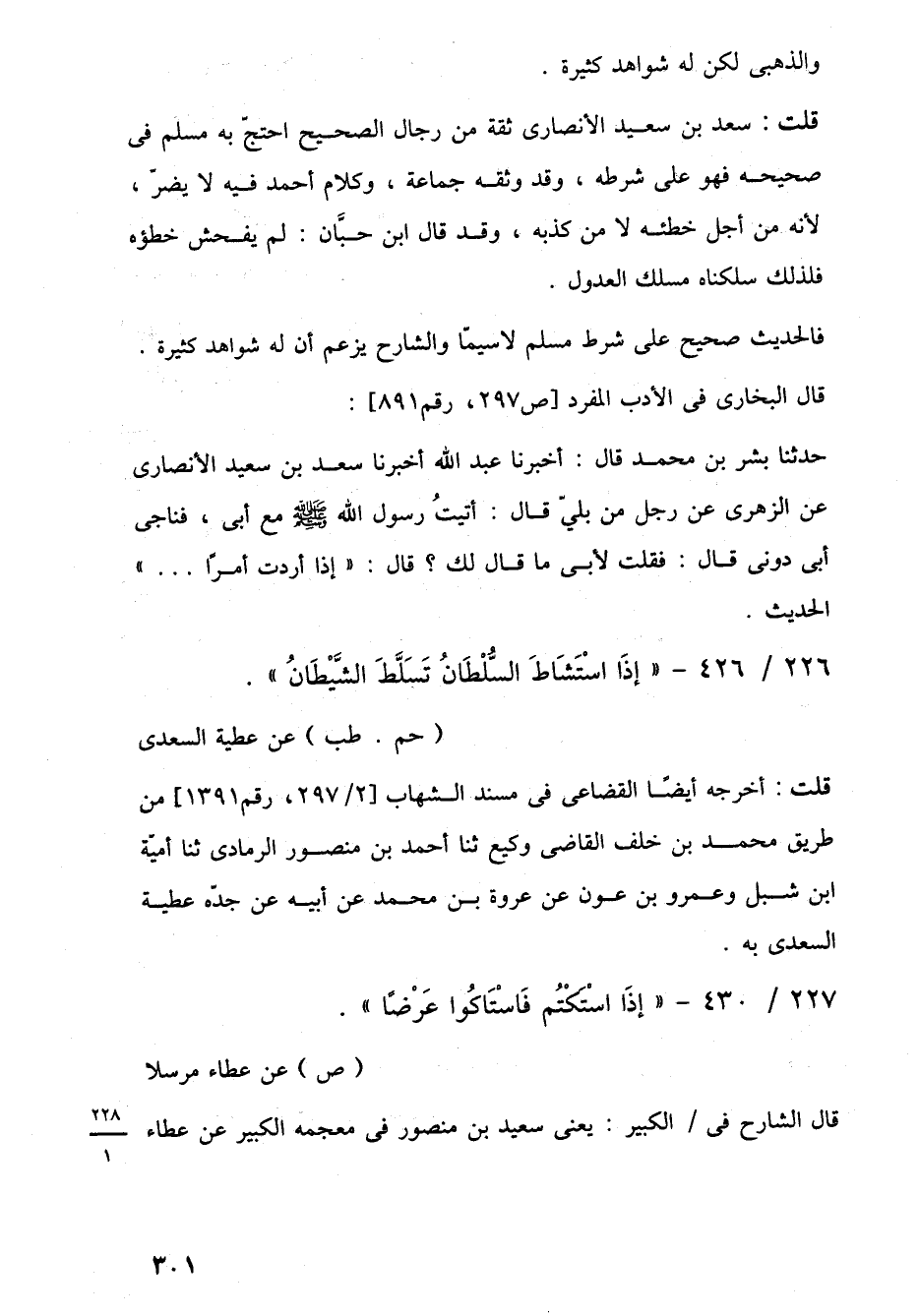 226/ 426 - "إِذَا اسْتَشَاطَ السُّلْطَانُ تَسَلَّطَ الشَّيْطَانُ". (حم. طب) عن عطية السعدى