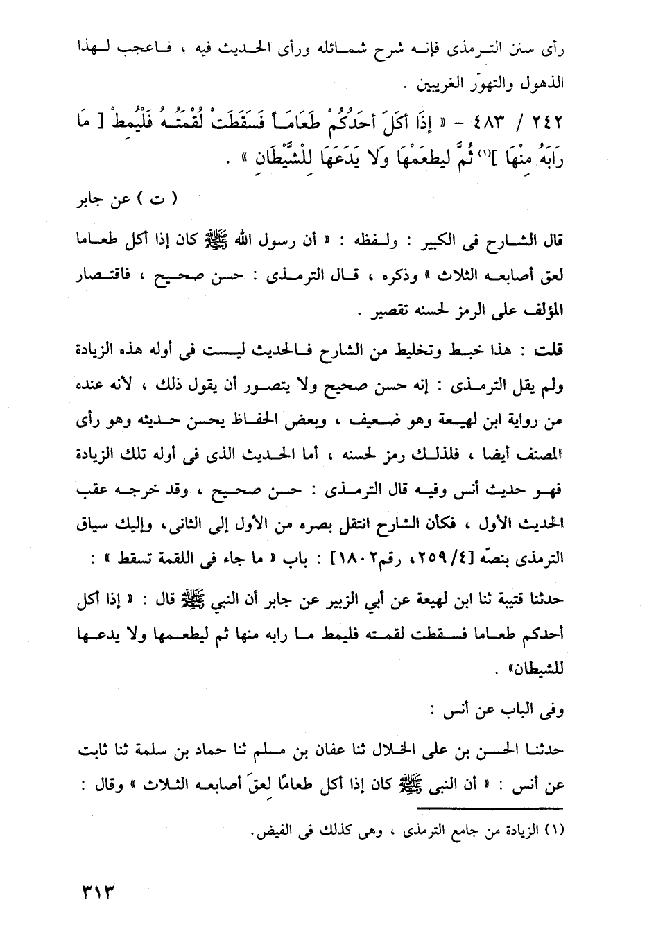 242/ 483 - "إِذَا أَكَلَ أحَدُكُمْ طَعَامًا فَسَقَطَتْ لُقْمَتُهُ فَلْيُمِطْ [مَا رَابَهُ مِنْهَا] (¬1) ثُمَّ ليطعَمْهَا وَلا يَدَعَهَا لِلْشَّيْطَانِ". (ت) عن جابر