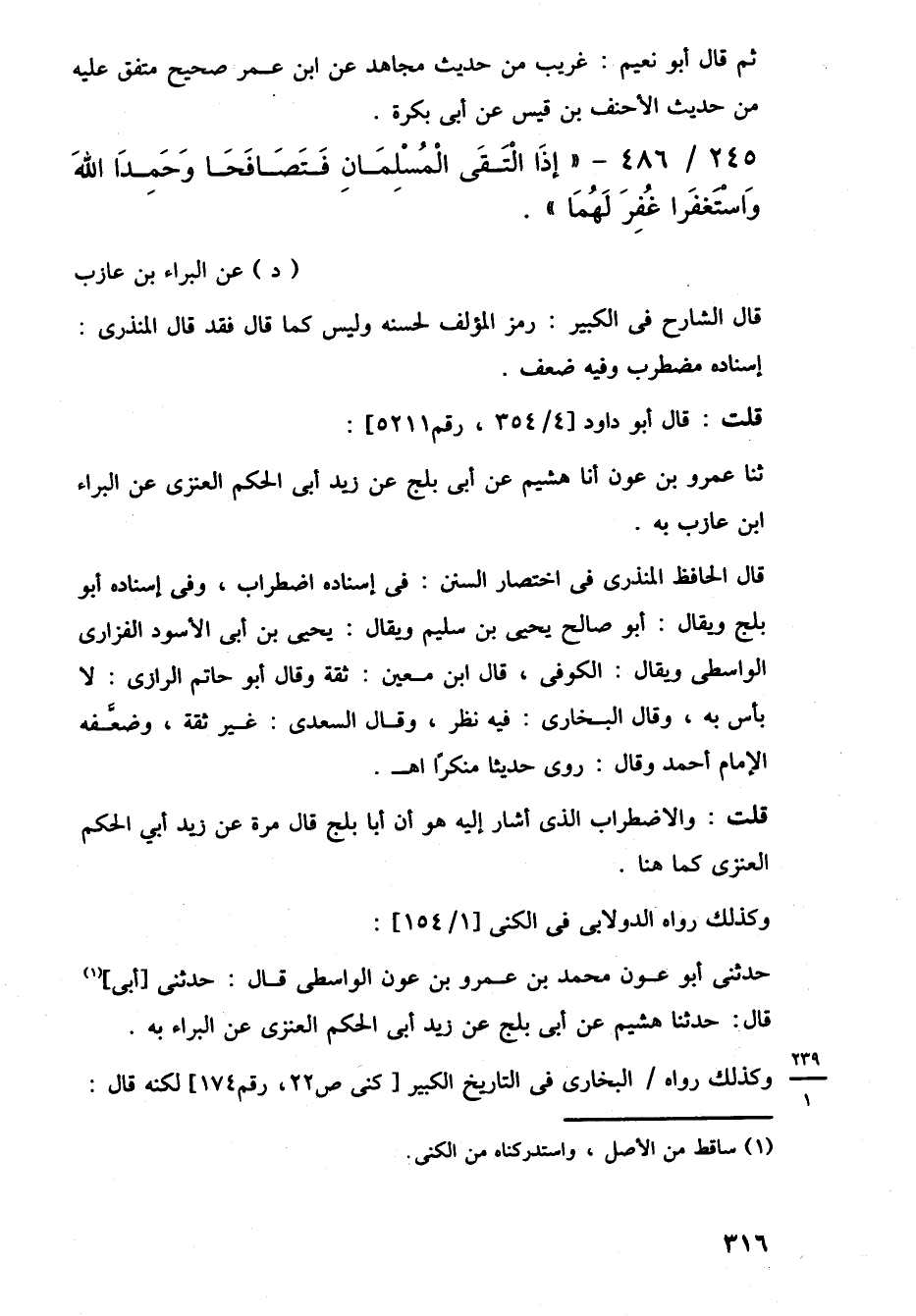 245/ 486 - "إِذَا الْتَقَى الْمُسْلمَان فَتَصَافَحَا وَحَمِدَا اللَّهَ وَاسْتَغفَرا غُفِرَ لَهُمَا". (د) عن البراء بن عازب